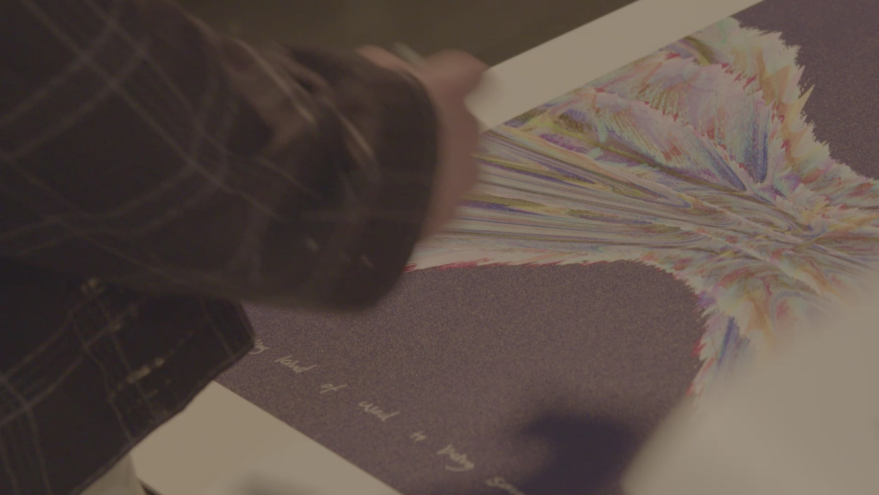 Our Originals measure 38″ x 38″ and often feature a lyric or the title of the song written by the artist in addition to their signature. These are much more limited edition – there is only one Original created per design. Originals sometimes come in alternate color palettes or wave designs to the prints.