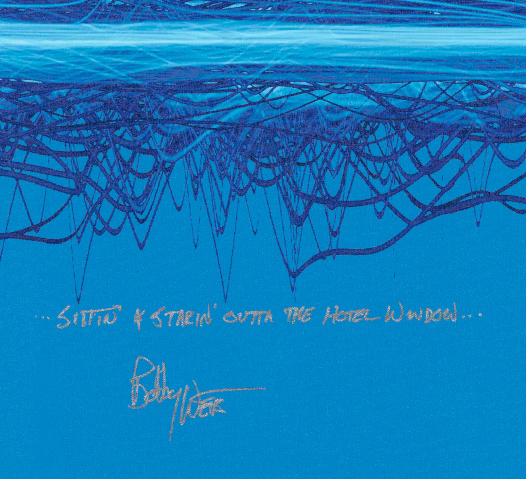 Original edition Soundwaves Artwork created from the sound waves recording of The Grateful Dead's "Truckin'."  Released on the band's famous 1970 album American Beauty, the song was recognized as a "national treasure" by the Library of Congress in 1997. Bobby Weir signed this print in San Rafael, California in September 2022. Bobby also hand-wrote a different lyric from the song on each piece.