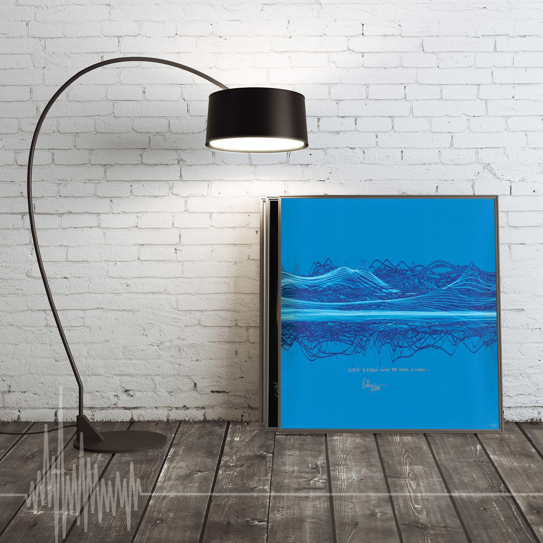 Our Originals measure 38″ x 38″ and often feature a lyric or the title of the song written by the artist in addition to their signature. These are much more limited edition – there is only one Original created per design. Originals sometimes come in alternate color palettes or wave designs to the prints.