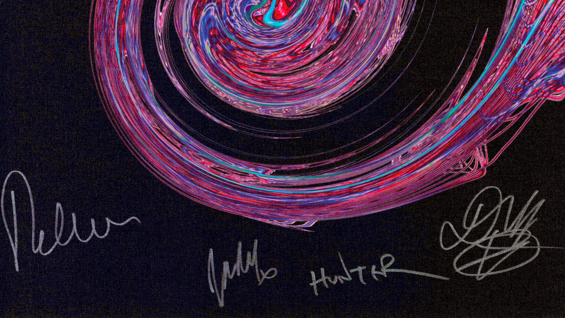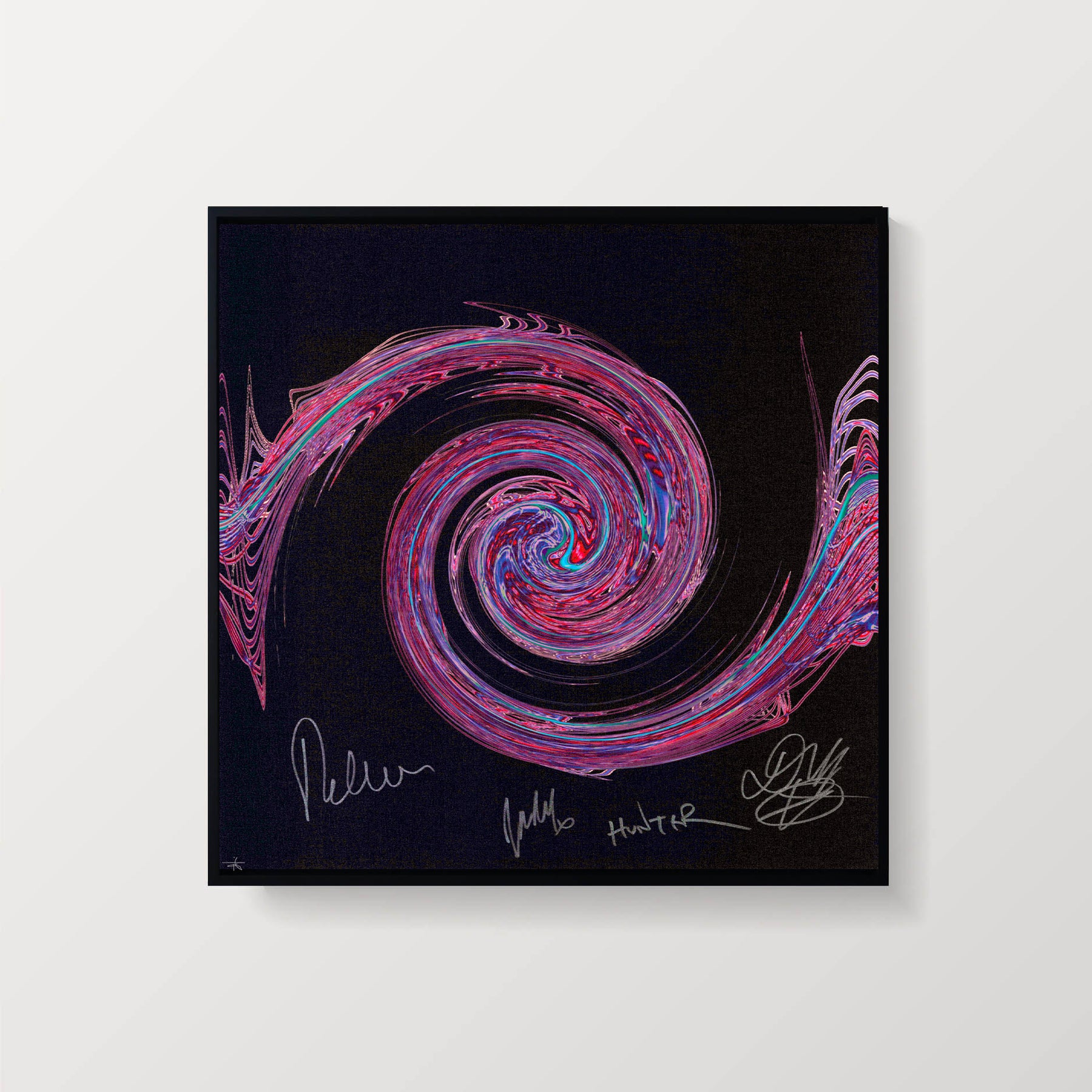 Our Originals measure 38″ x 38″ and often feature a lyric or the title of the song written by the artist in addition to their signature. These are much more limited edition – there is only one Original created per design. Originals sometimes come in alternate color palettes or wave designs to the prints.