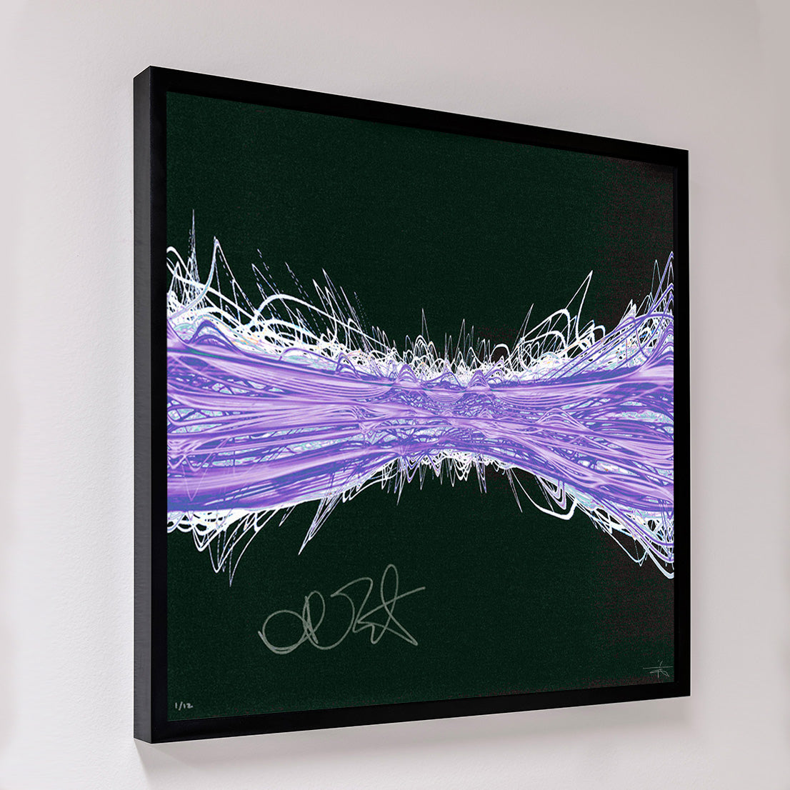 Each signed print measures 24″ x 24″ and is hand signed by the musician. They are part of a larger run of prints, typically with 50-100 copies signed in total. Our unsigned prints, which come in a standard and a mini size, feature the same design as the signed print, but do not have the musician's autograph. They are still limited edition and are signed by Soundwaves Art creator, Tim Wakefield.