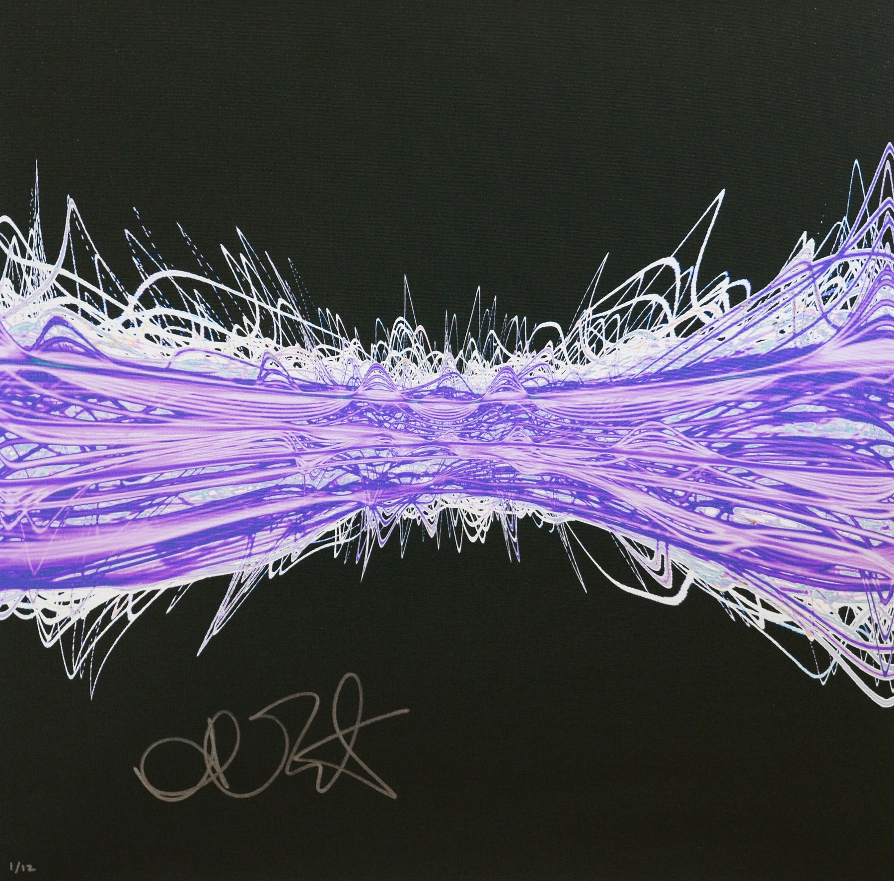 Our Originals measure 38″ x 38″ and often feature a lyric or the title of the song written by the artist in addition to their signature. These are much more limited edition – there is only one Original created per design. Originals sometimes come in alternate color palettes or wave designs to the prints.