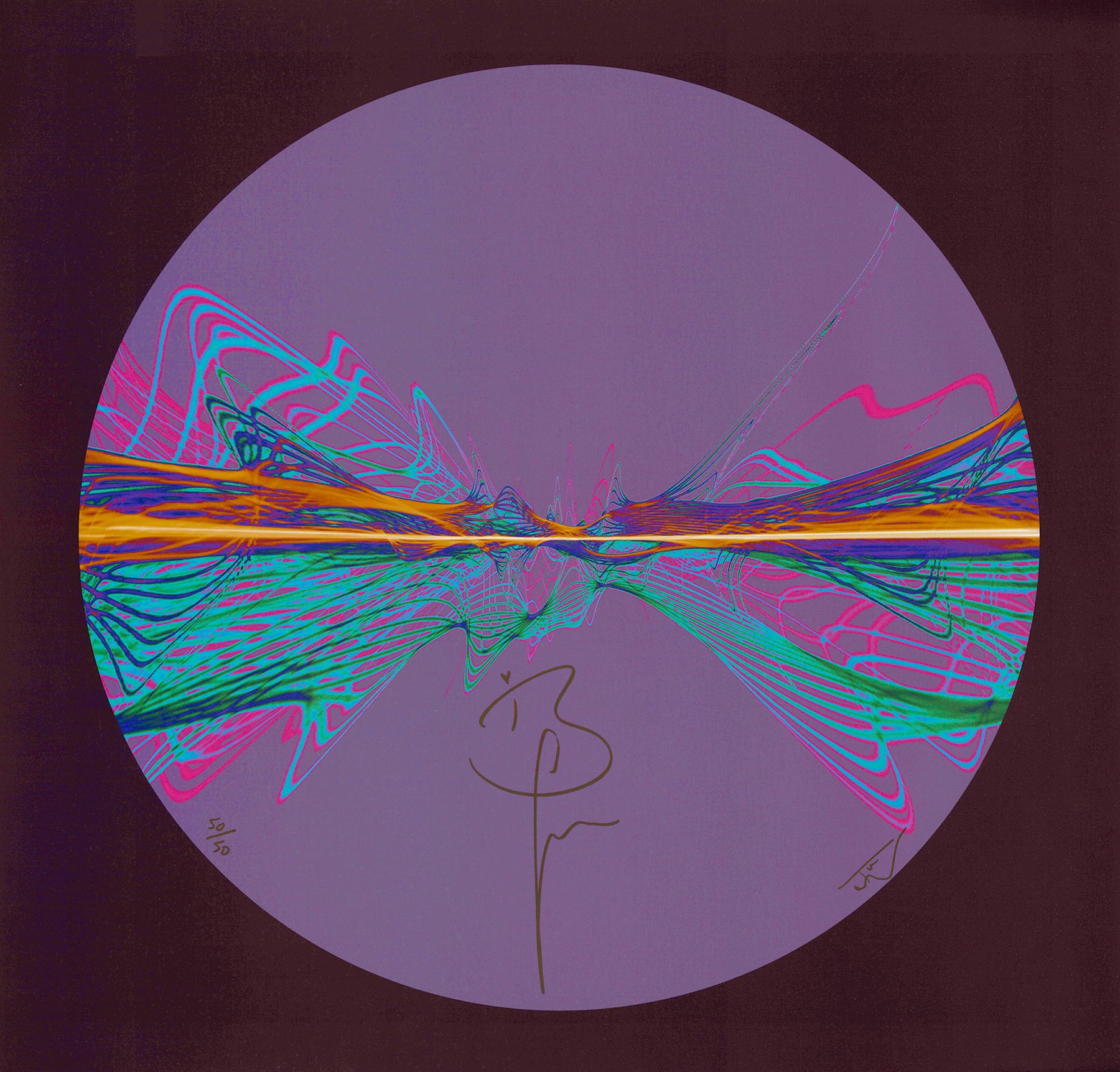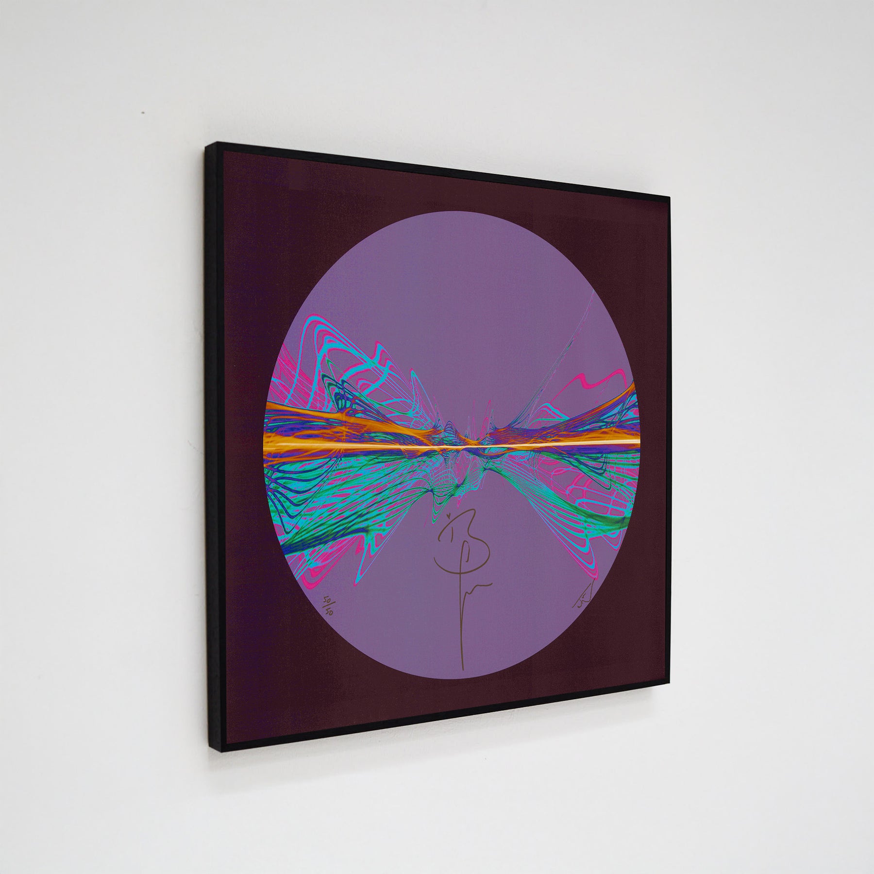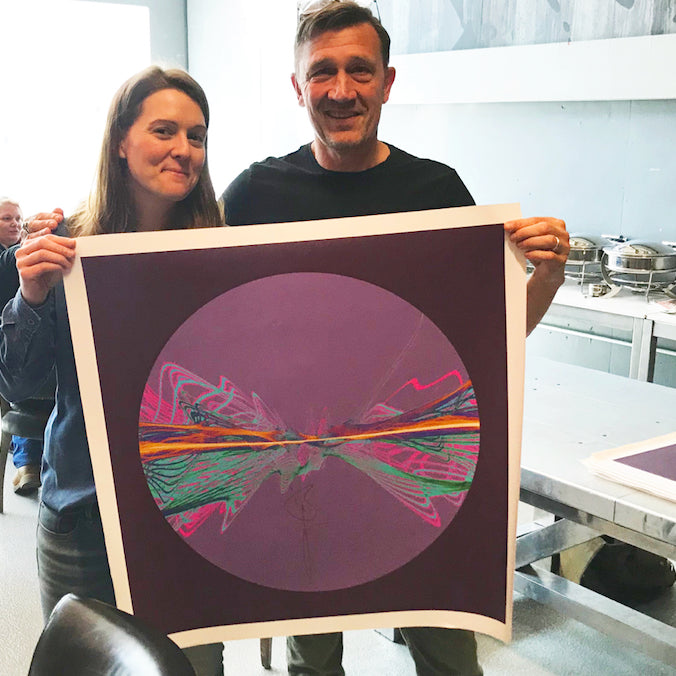 Our Originals measure 38″ x 38″ and often feature a lyric or the title of the song written by the artist in addition to their signature. These are much more limited edition – there is only one Original created per design. Originals sometimes come in alternate color palettes or wave designs to the prints.