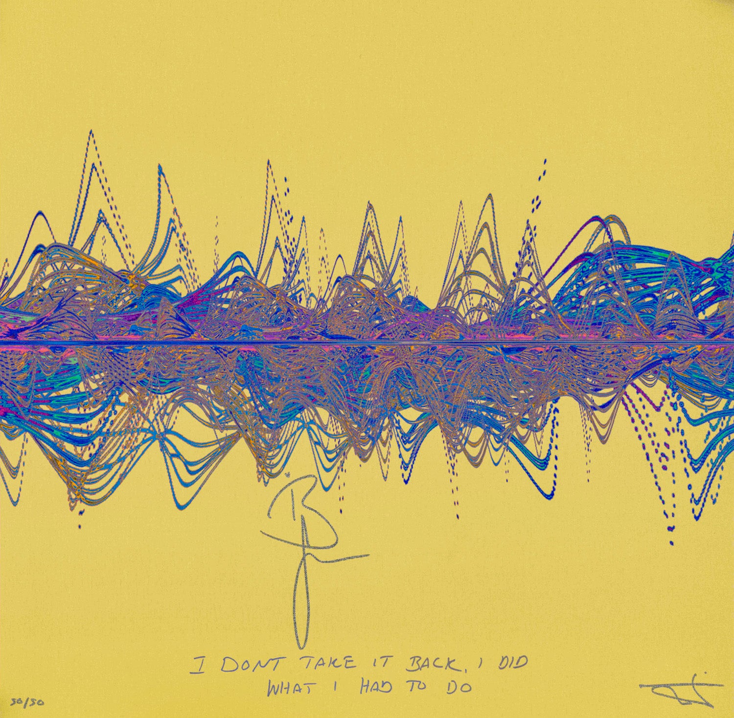 The print also features the lyric "I don't take it back, I did what I had to do" written by Brandi and printed on the artwork.