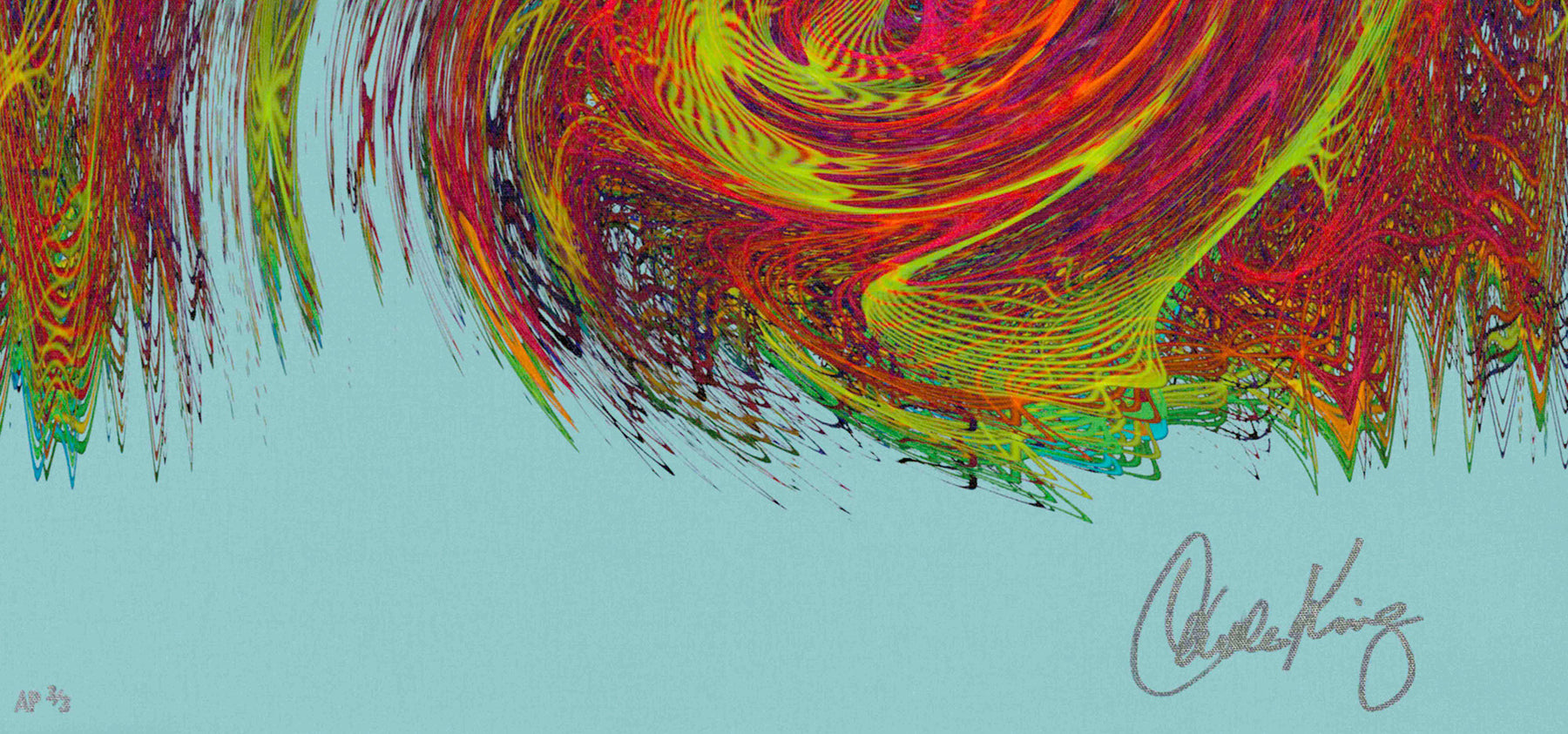 Our Originals measure 38″ x 38″ and often feature a lyric or the title of the song written by the artist in addition to their signature. These are much more limited edition – there is only one Original created per design. Originals sometimes come in alternate color palettes or wave designs to the prints.