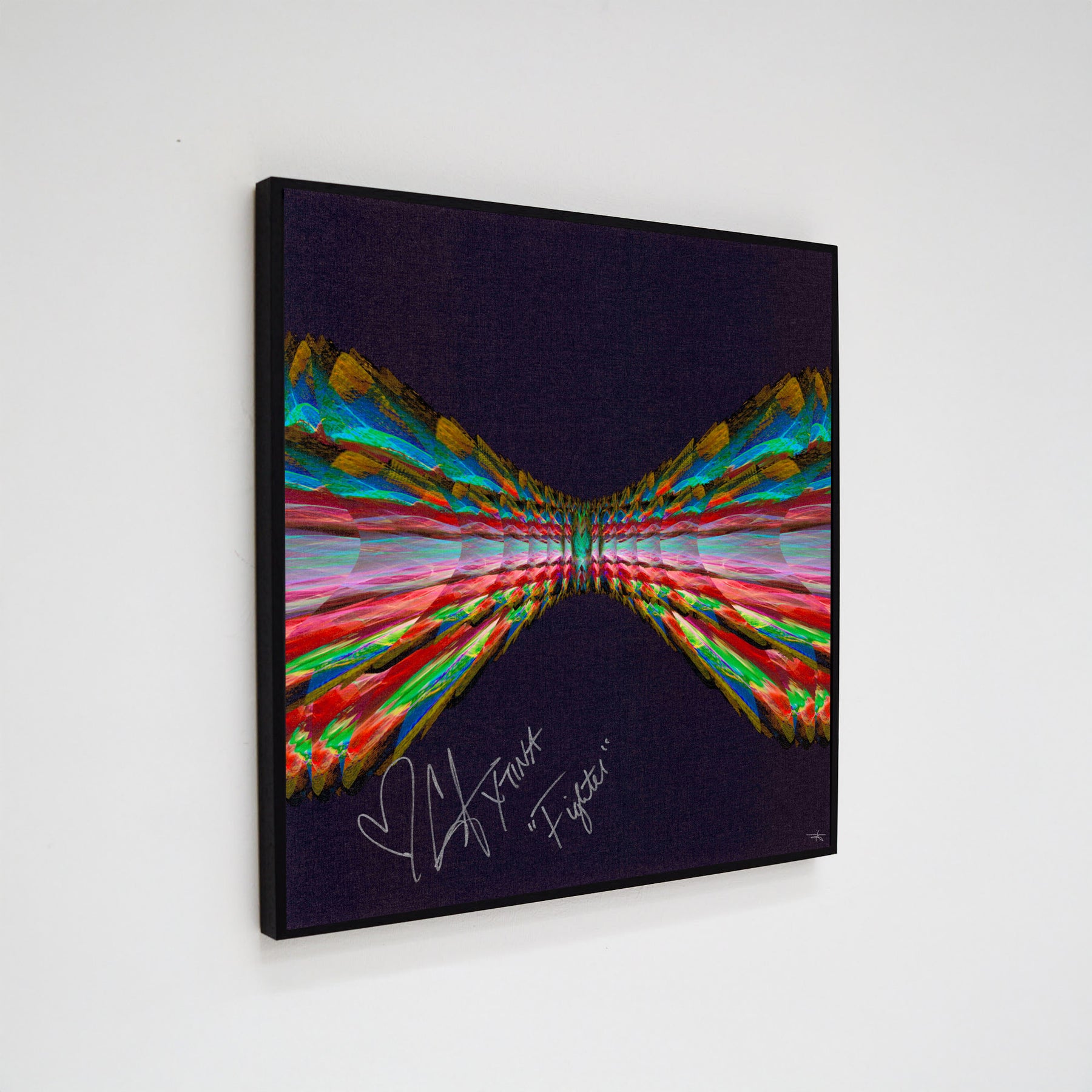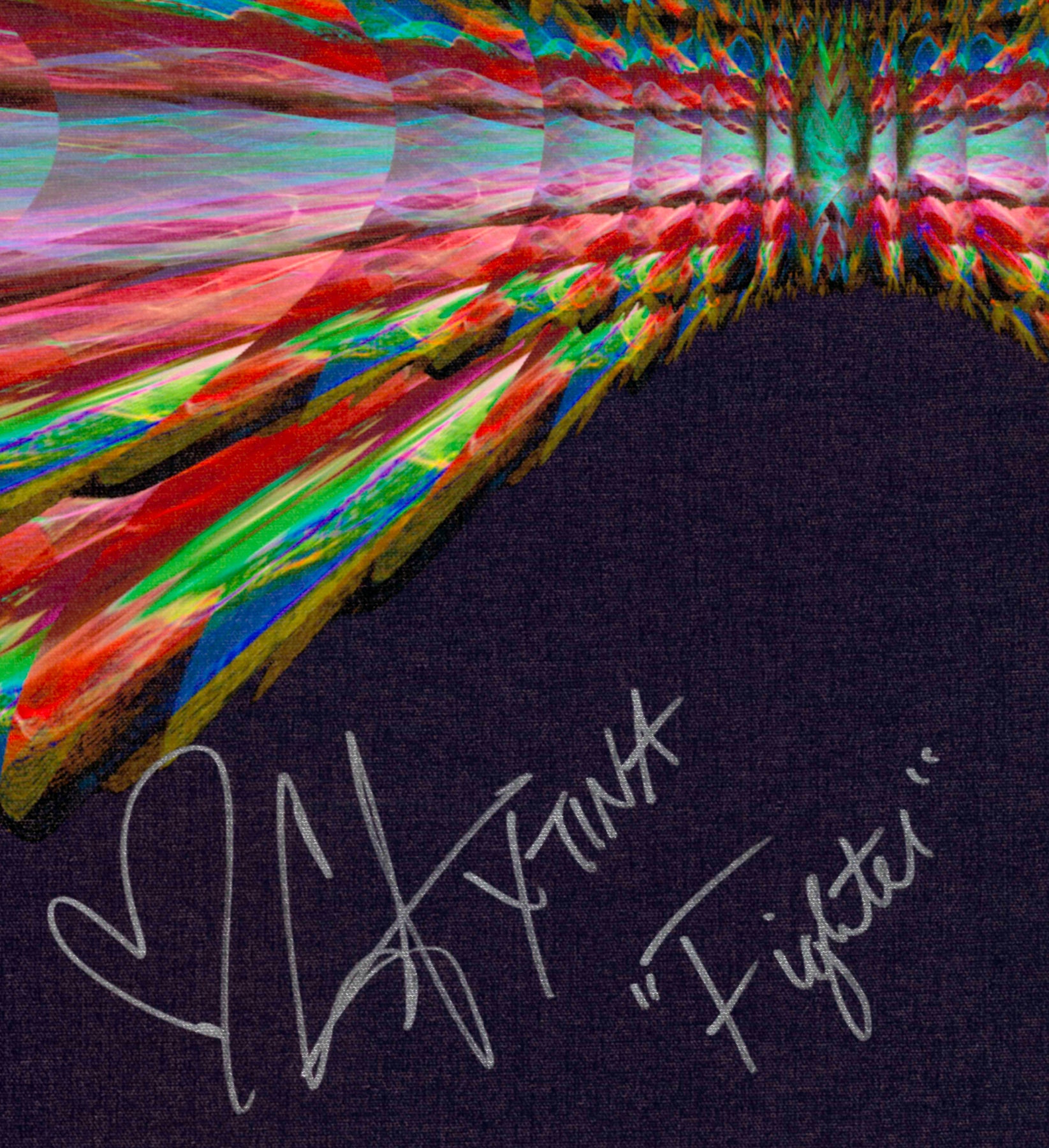 Our Originals measure 38″ x 38″ and often feature a lyric or the title of the song written by the artist in addition to their signature. These are much more limited edition – there is only one Original created per design. Originals sometimes come in alternate color palettes or wave designs to the prints.