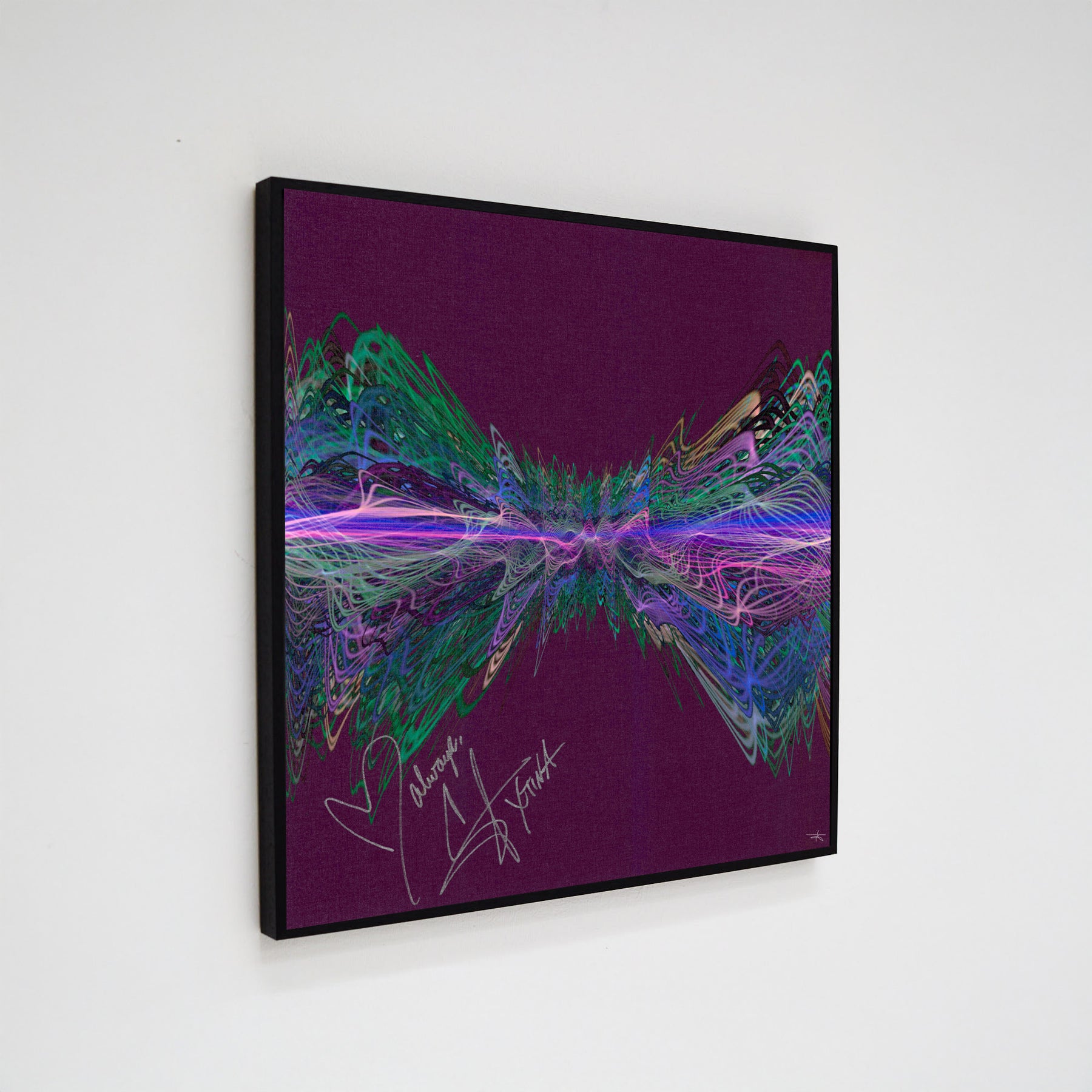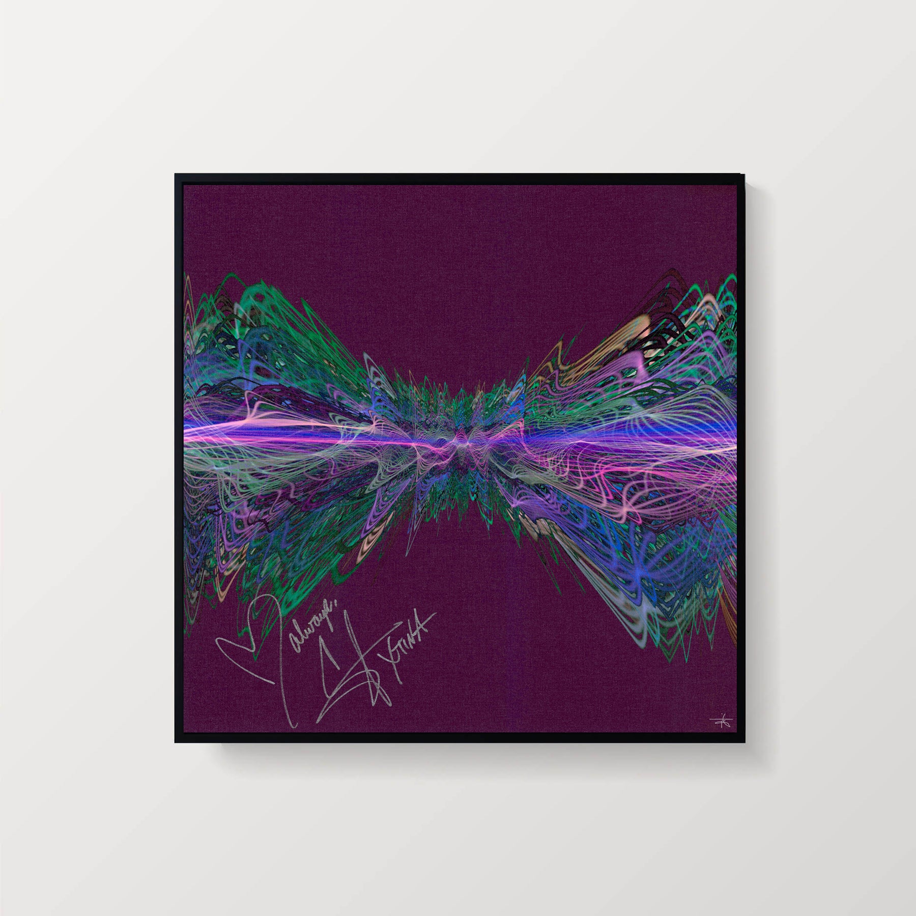 Each signed print measures 24″ x 24″ and is hand signed by the musician. They are part of a larger run of prints, typically with 50-100 copies signed in total. Our unsigned prints, which come in a standard and a mini size, feature the same design as the signed print, but do not have the musician's autograph. They are still limited edition and are signed by Soundwaves Art creator, Tim Wakefield.