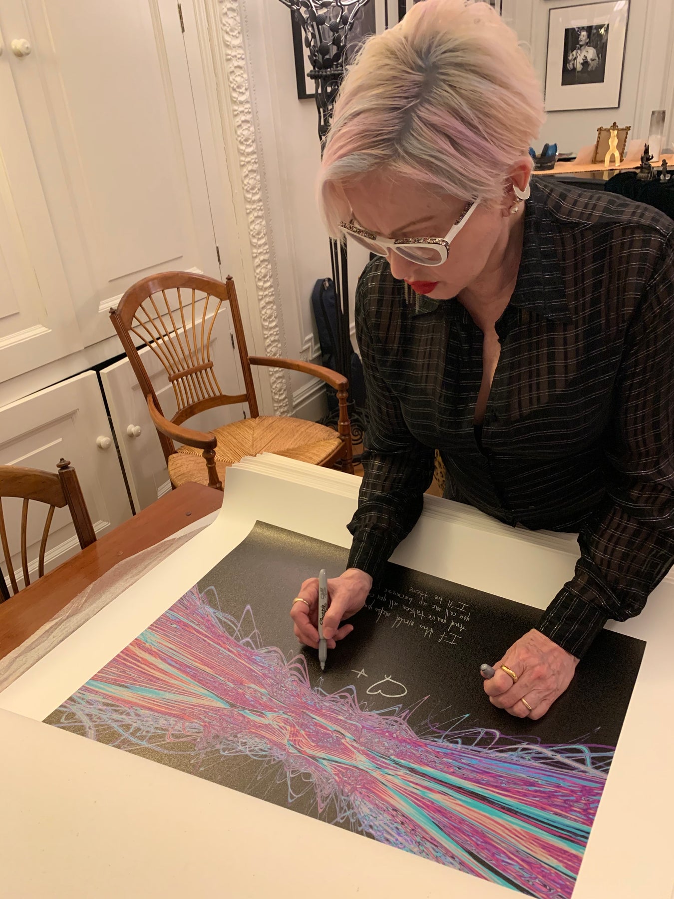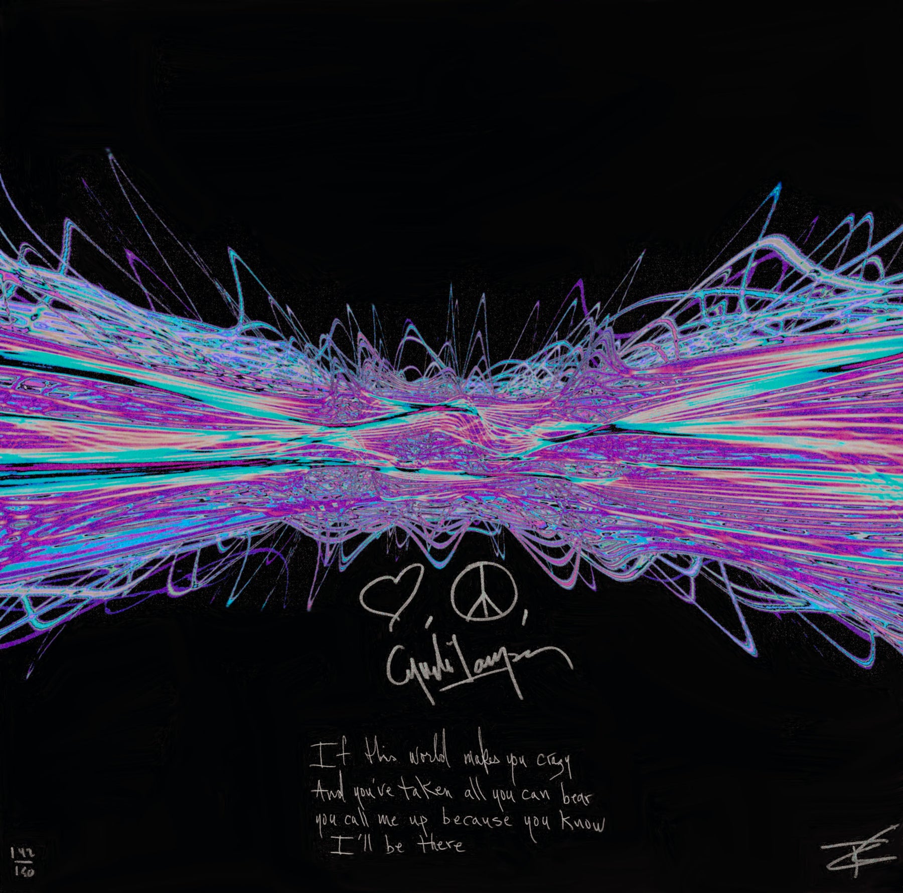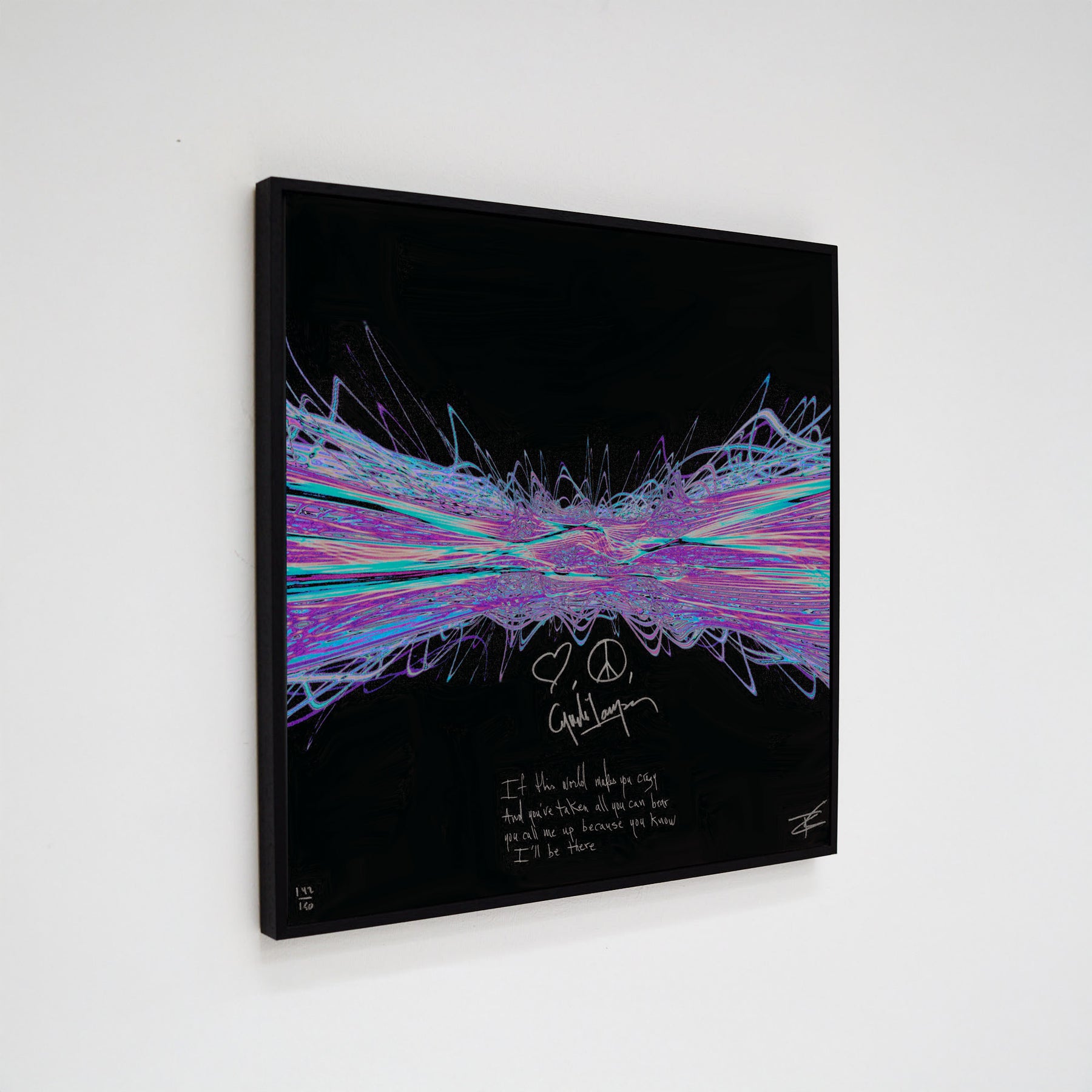 Limited edition Soundwaves Artwork created from the soundwaves of Cyndi Lauper’s 1986 Grammy-nominated song “True Colors.”  Cyndi hand-signed this print in her New York City home.