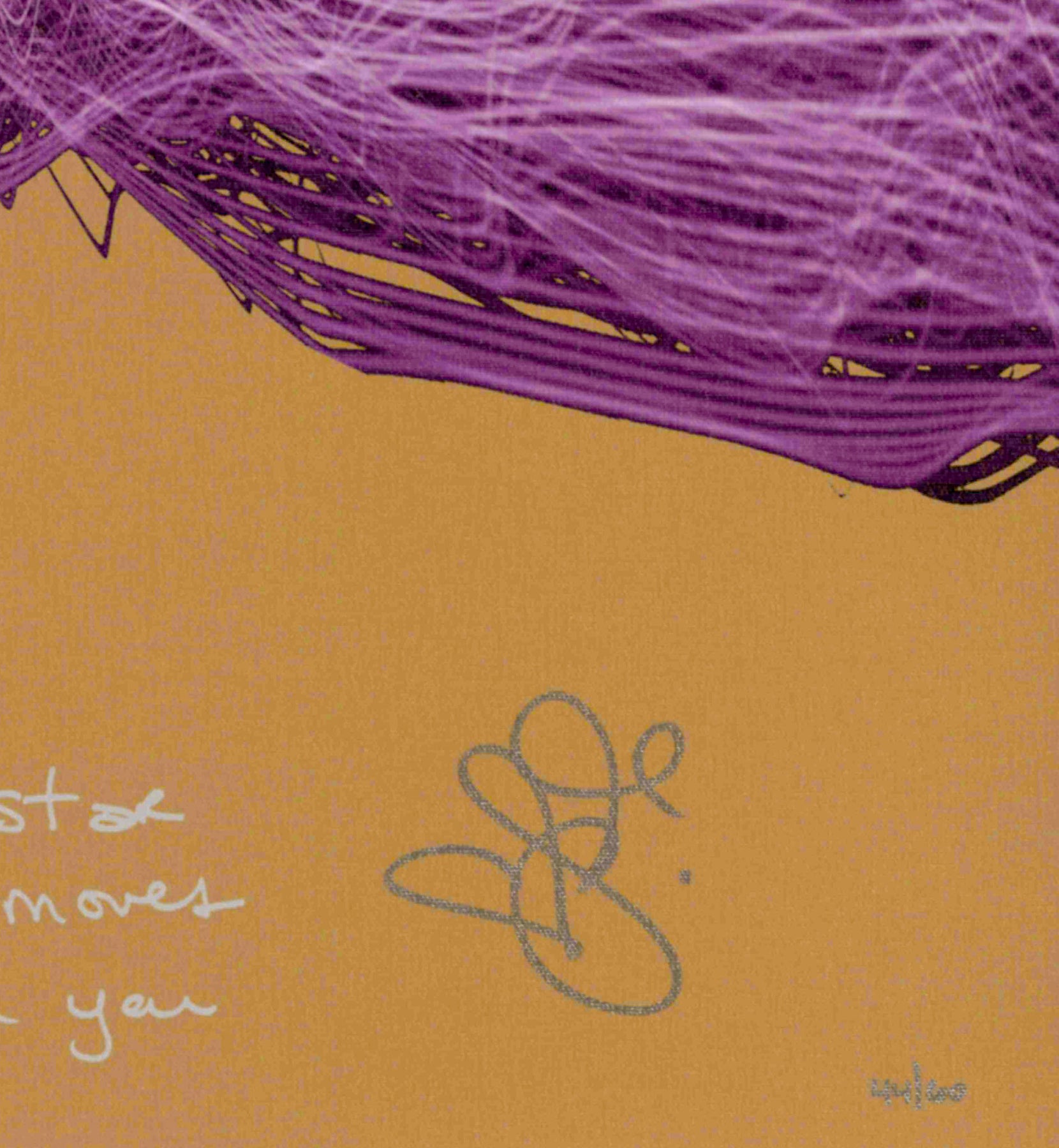 Our Originals measure 38″ x 38″ and often feature a lyric or the title of the song written by the artist in addition to their signature. These are much more limited edition – there is only one Original created per design. Originals sometimes come in alternate color palettes or wave designs to the prints.