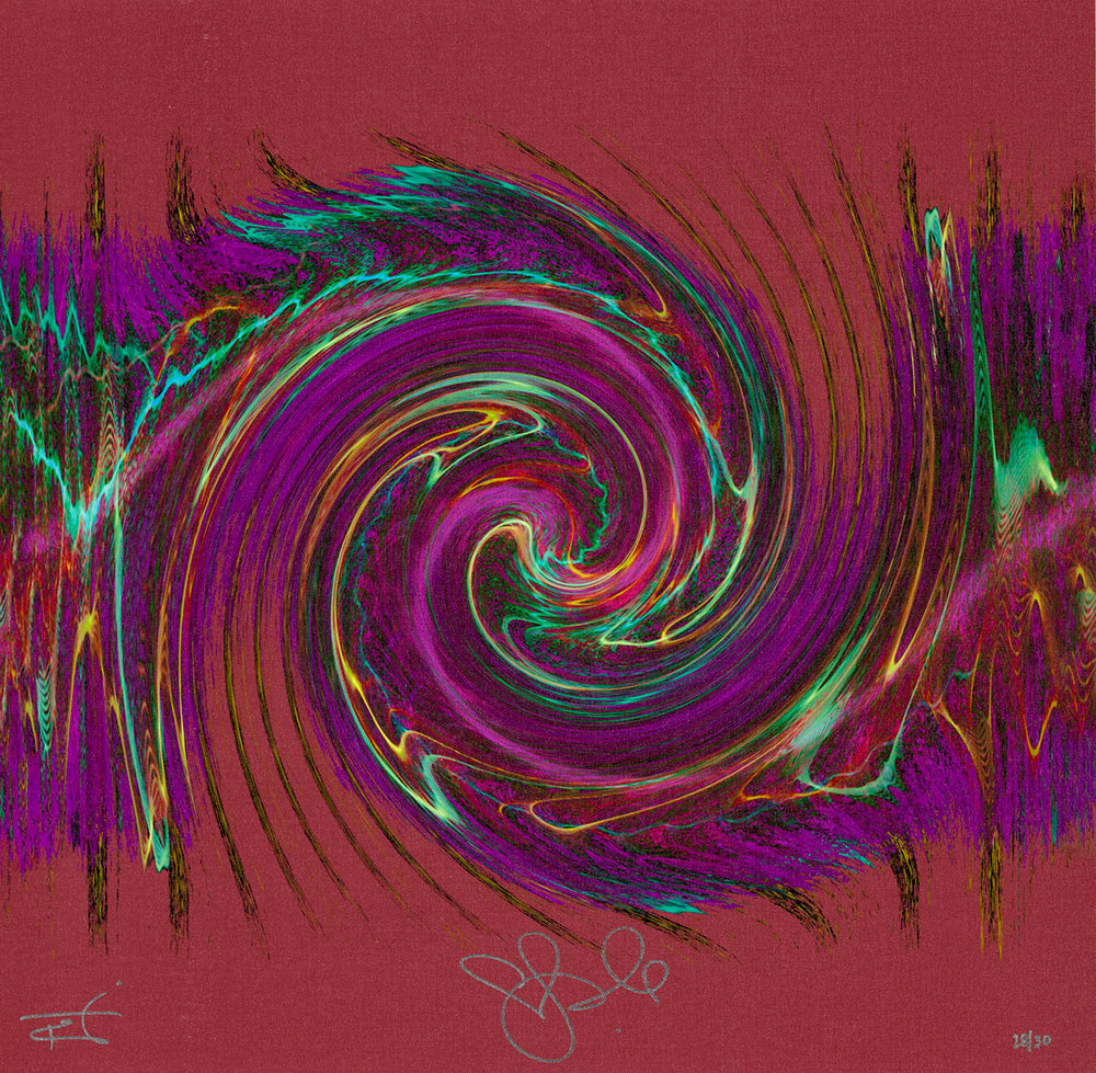 Our Originals measure 38″ x 38″ and often feature a lyric or the title of the song written by the artist in addition to their signature. These are much more limited edition – there is only one Original created per design. Originals sometimes come in alternate color palettes or wave designs to the prints.