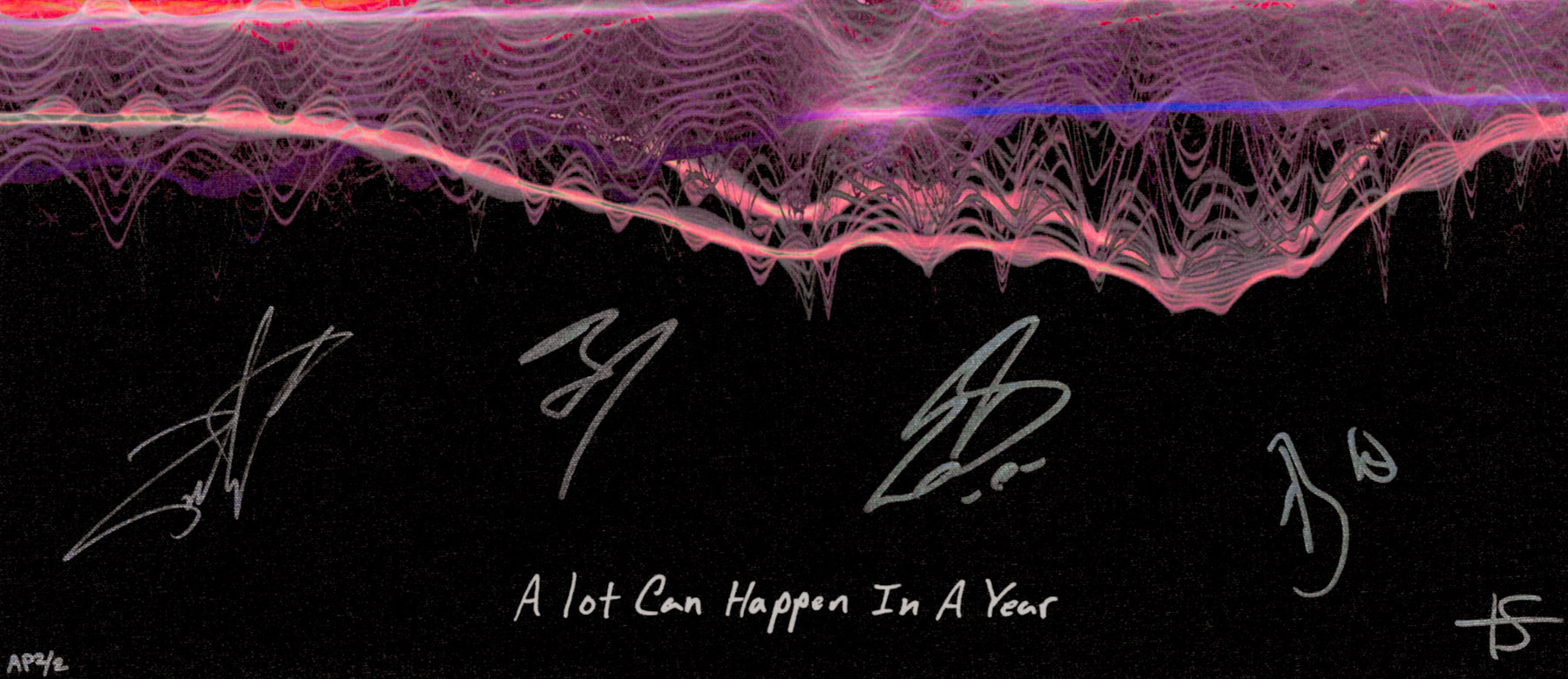 Each artwork also features the lyric "A Lot Can Happen In A Year" handwritten by the band and digitally printed onto the artwork