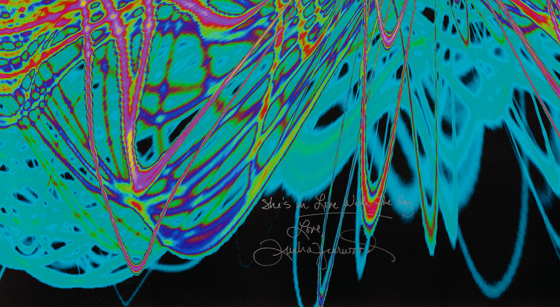 Limited edition Soundwaves Artwork created from the sound waves of Trisha Yearwood's 1991 #1 hit, "She's In Love With The Boy." Trisha signed this print in Nashville, TN.