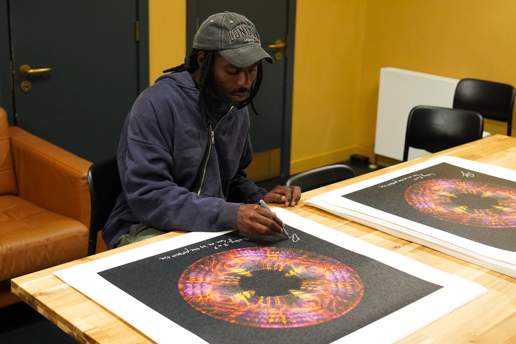 Limited Edition Soundwaves Artwork created from the audio of Blood Orange's 'Champagne Coast.' Dev hand signed these prints on November 7th, 2025 before his show at Alexandra Palace to support War Child UK.