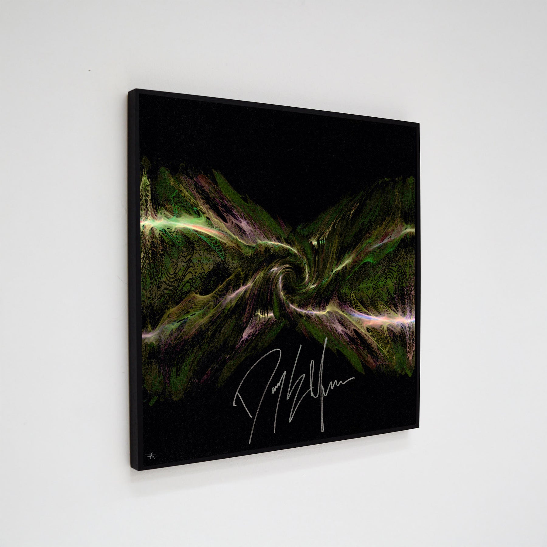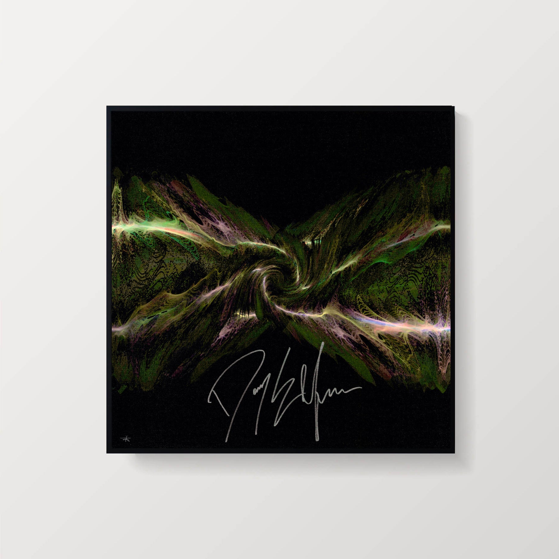 Each signed print measures 24″ x 24″ and is hand signed by the musician. They are part of a larger run of prints, typically with 50-100 copies signed in total. Our unsigned prints, which come in a standard and a mini size, feature the same design as the signed print, but do not have the musician's autograph. They are still limited edition and are signed by Soundwaves Art creator, Tim Wakefield.