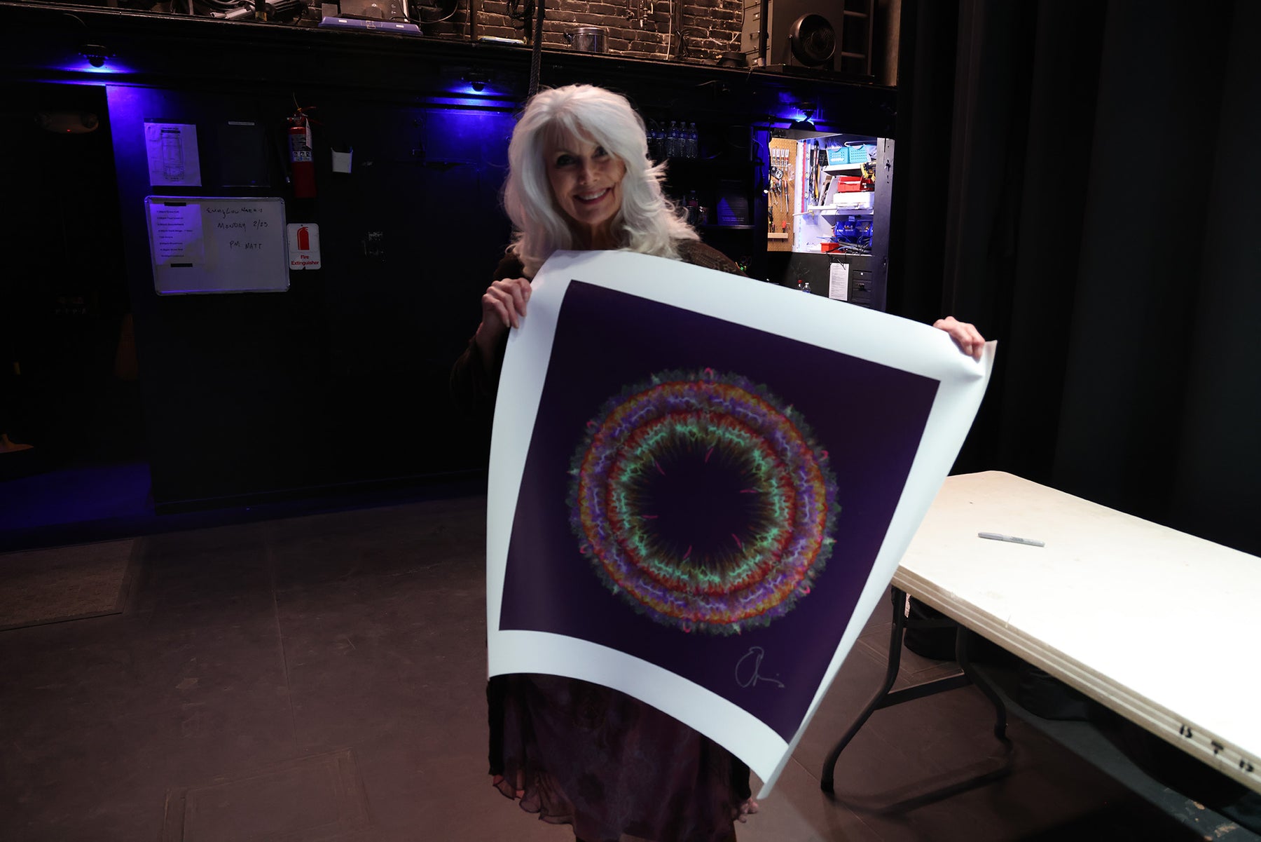 Original Soundwaves Artwork created from the sound waves of Emmylou Harris' "Boulder to Birmingham." Emmylou hand-signed these second-edition artworks after soundcheck at Paramount Theater in Austin, TX on February 23, 2026.