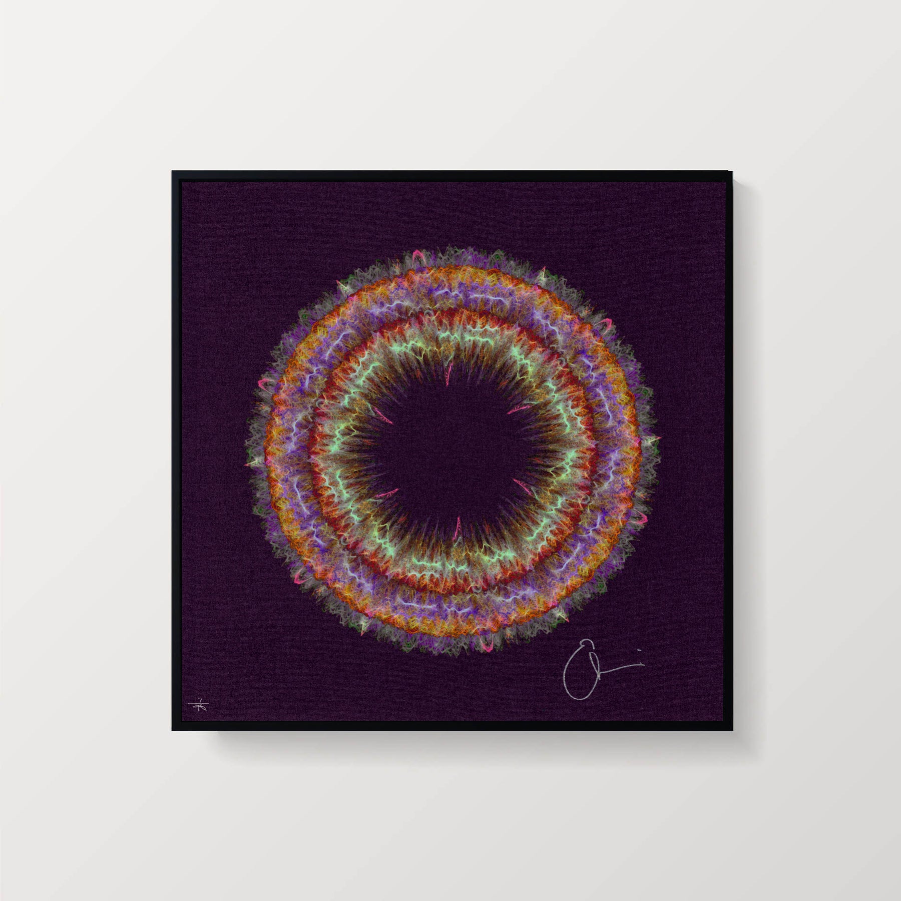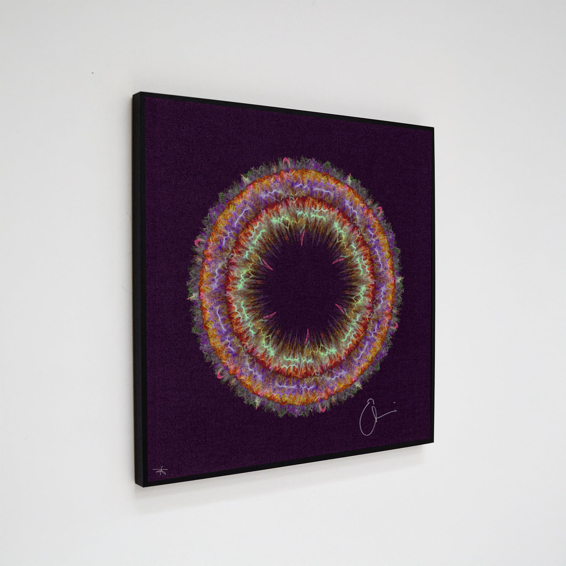 Our Originals measure 38″ x 38″ and often feature a lyric or the title of the song written by the artist in addition to their signature. These are much more limited edition – there is only one Original created per design. Originals sometimes come in alternate color palettes or wave designs to the prints.