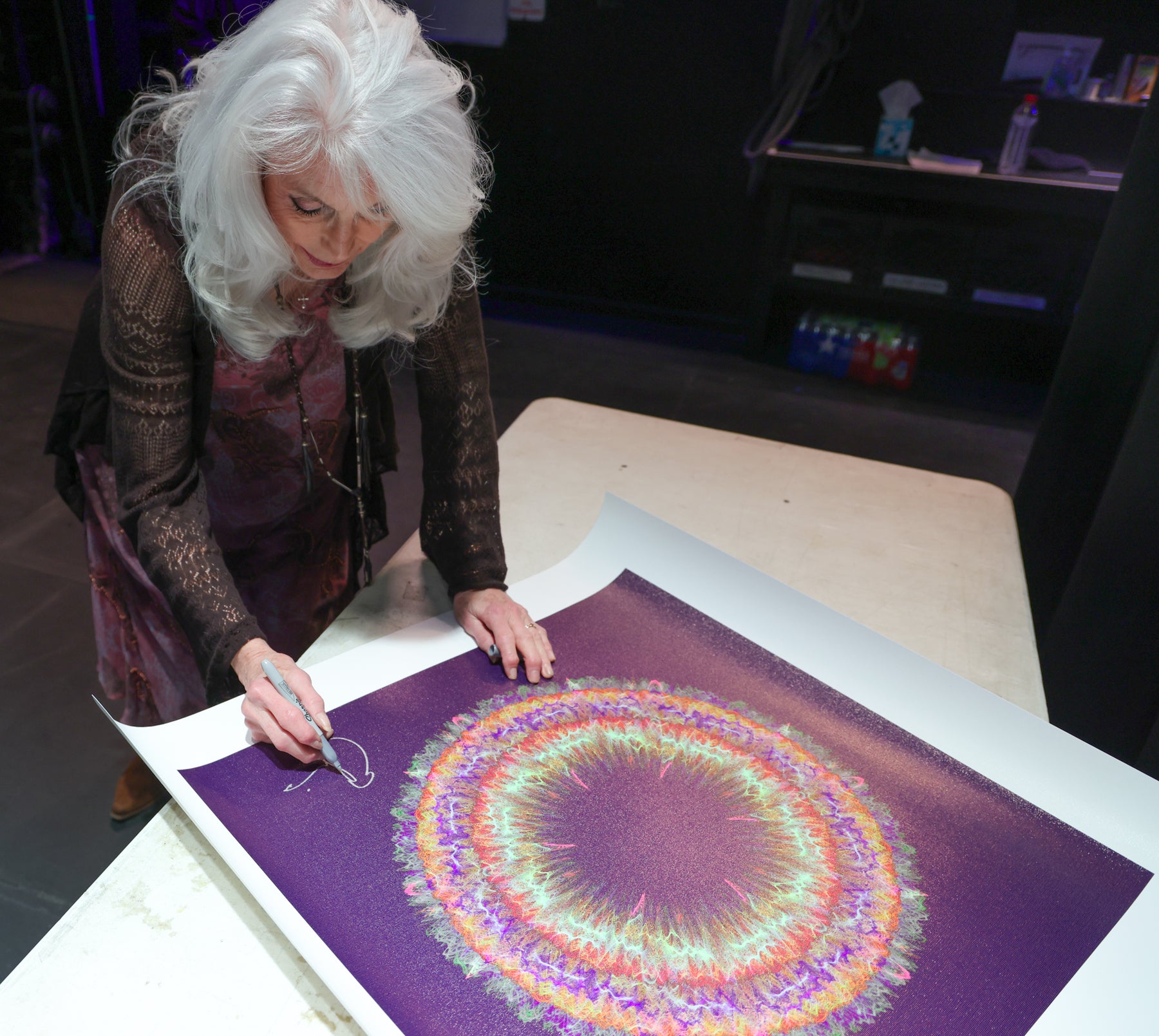 Limited second-edition Soundwaves Artwork created from the sound waves of Emmylou Harris' 1975 classic "Boulder to Birmingham." Emmylou hand-signed these prints after soundcheck at Paramount Theater in Austin, TX on February 23, 2026.