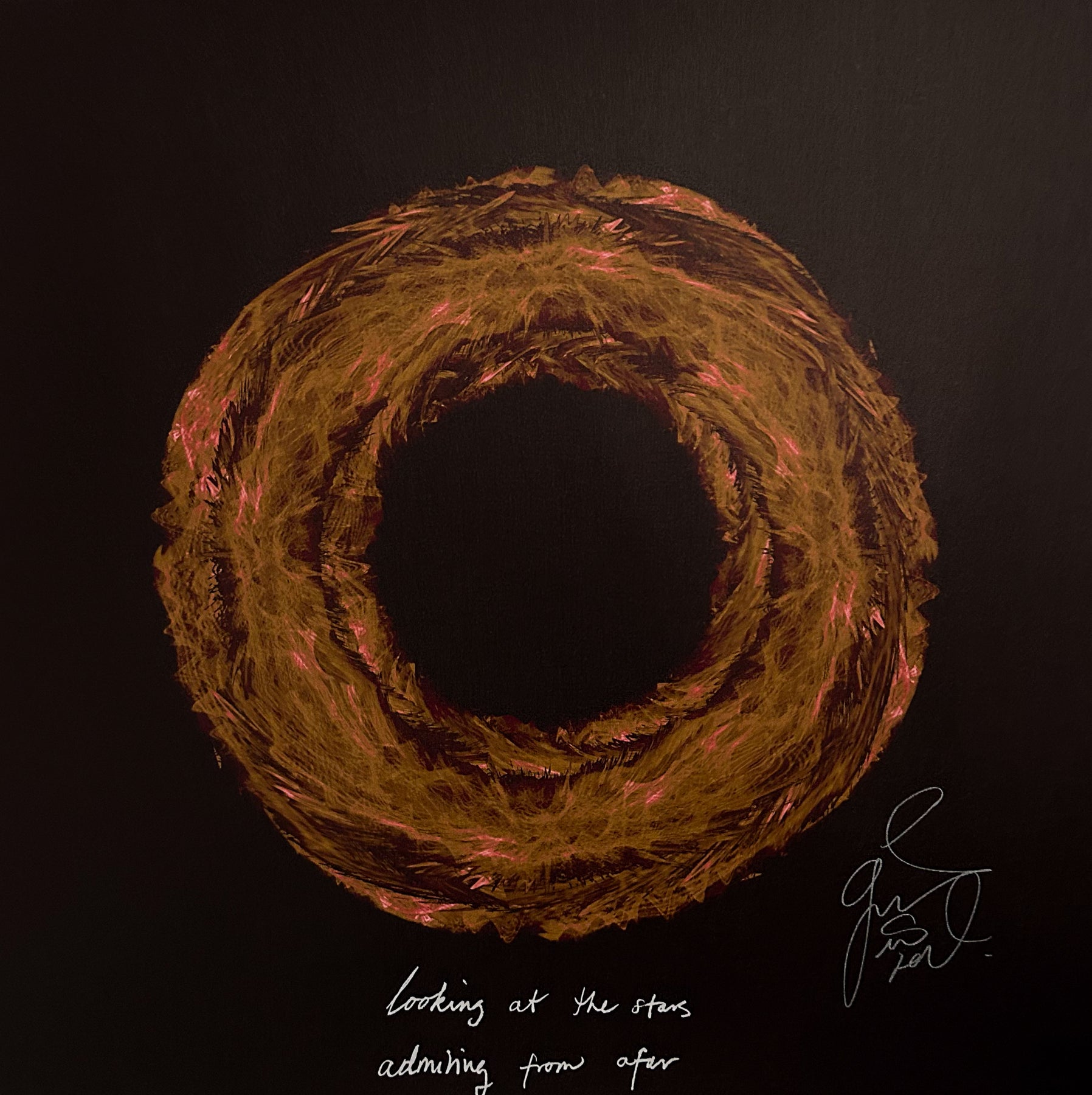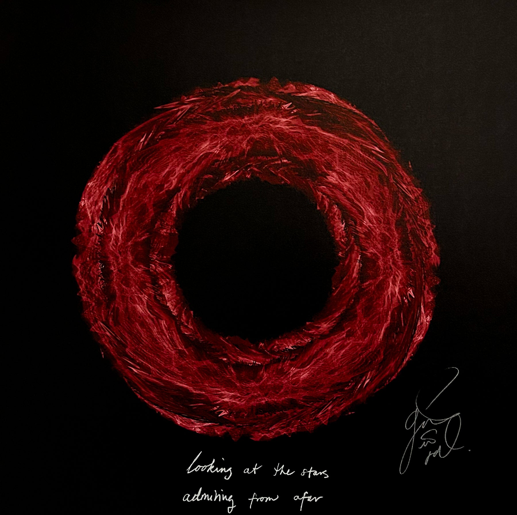 Each artwork features a handwritten lyric from Marie that's been digitally added: "Looking at the stars / Admiring from afar"