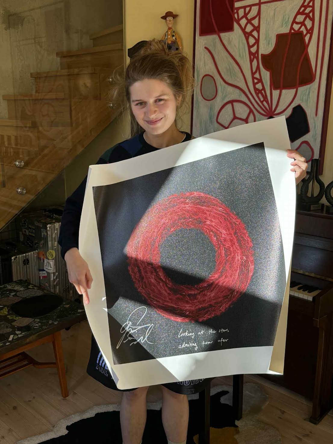Original Limited Second- Edition Soundwaves Artwork created from the audio of girl in red's "we fell in love in october." Marie hand-signed these prints at home in October 2025. All profits from the collection will benefit The Trevor Project.