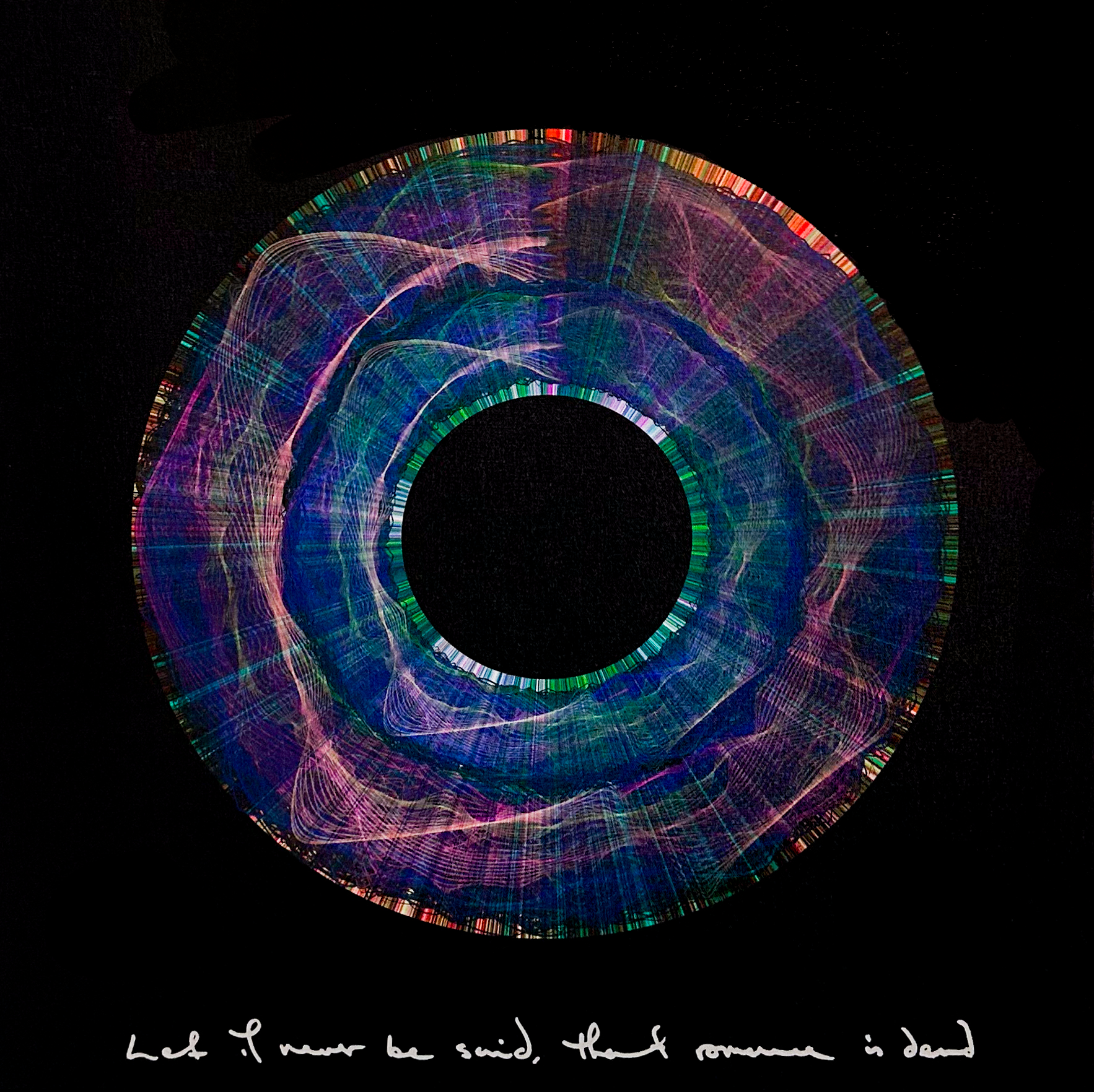 Each artwork features a handwritten lyric from the band that's been digitally added: "Let it never be said, that romance is dead"