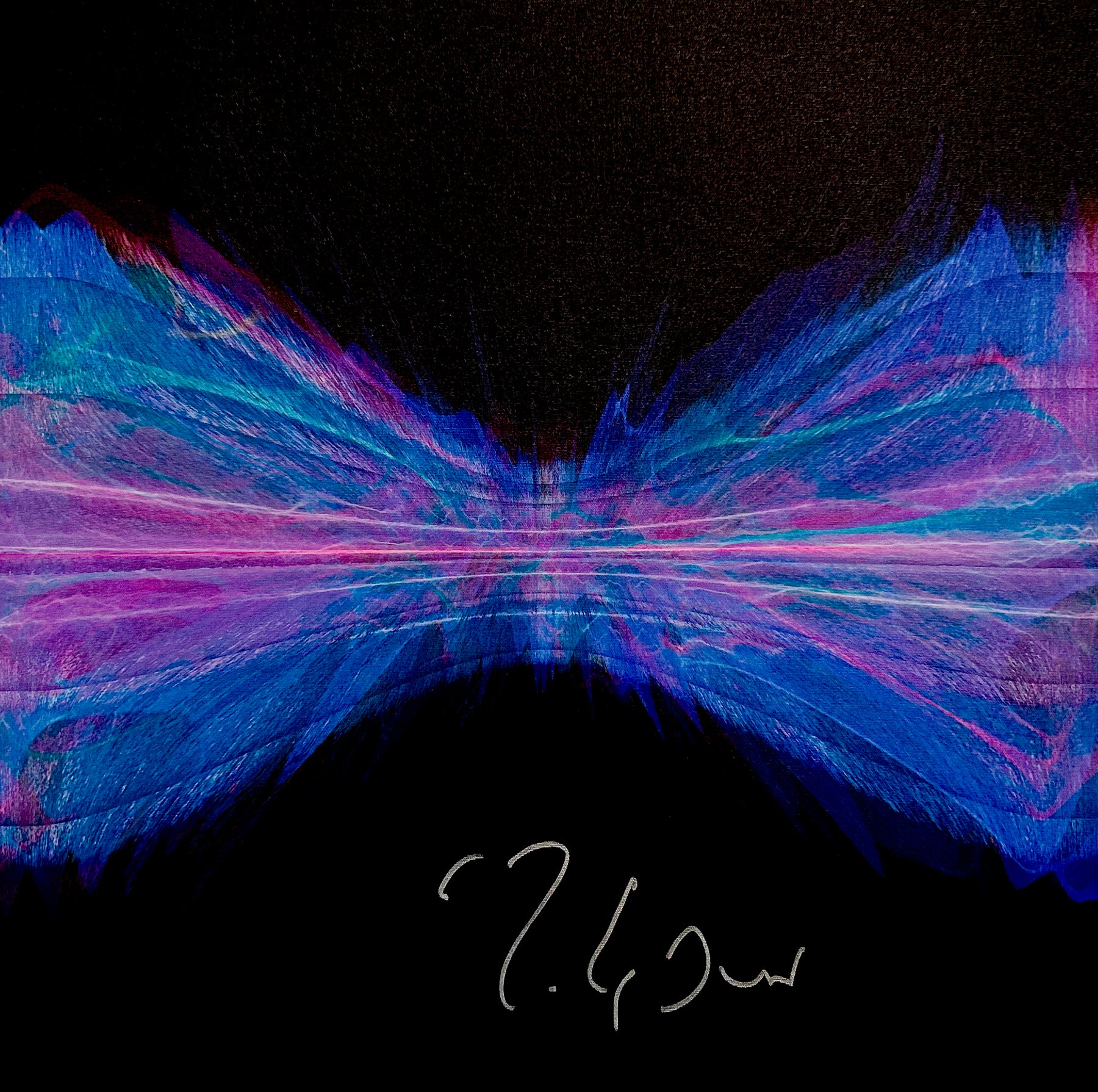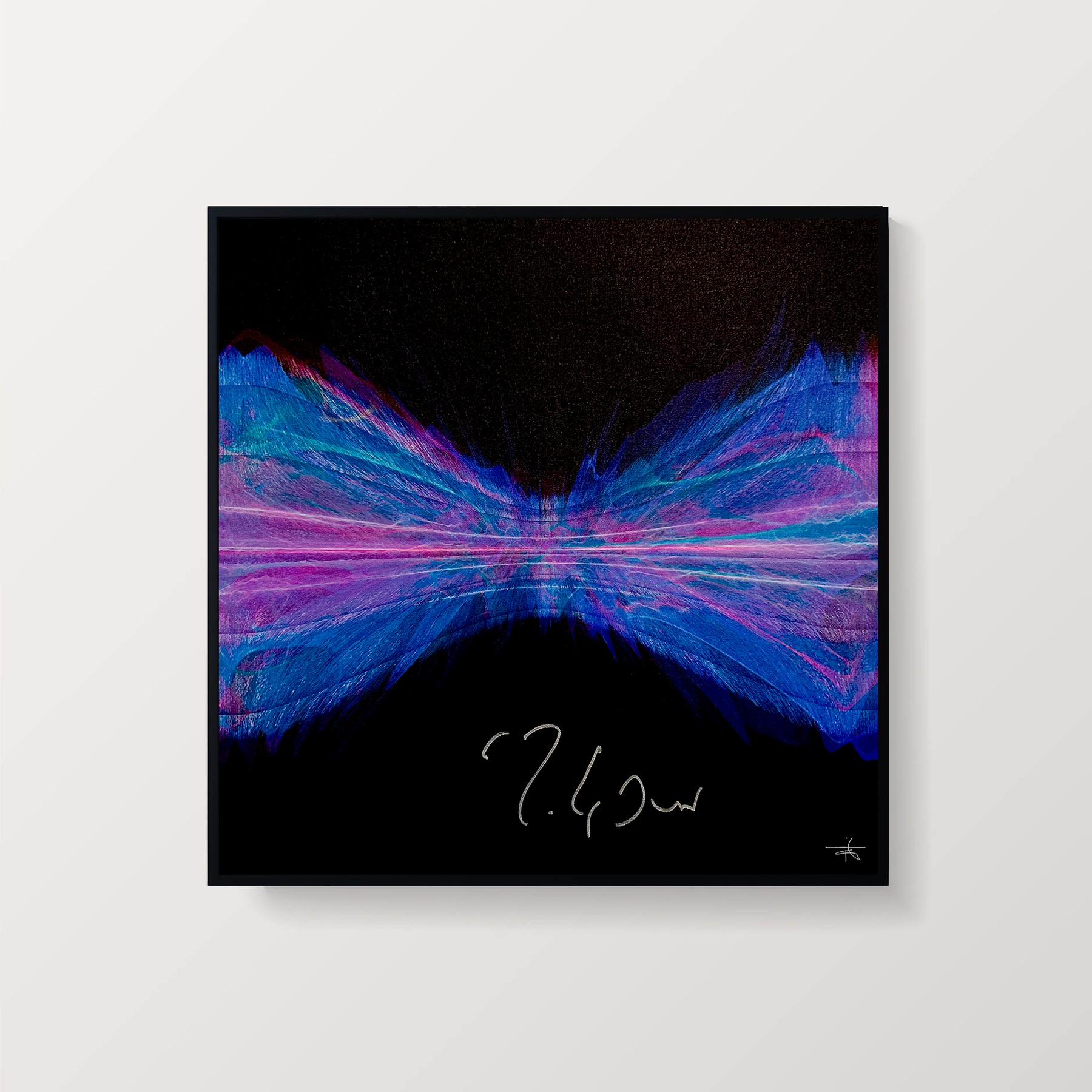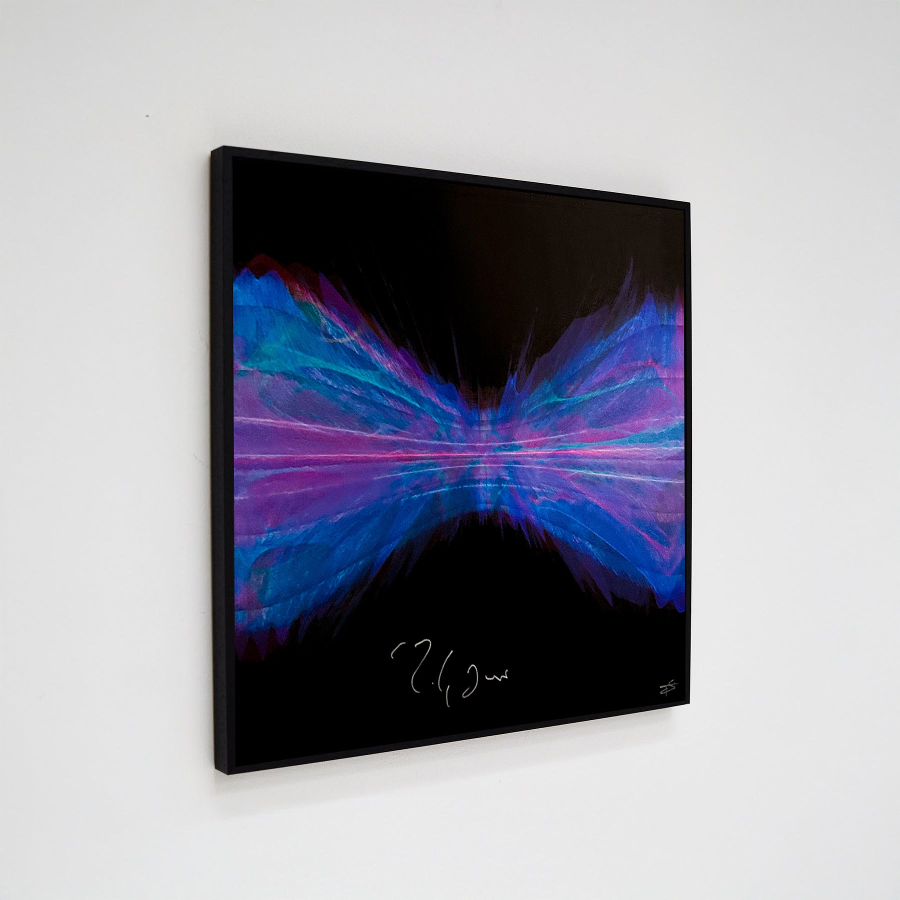 Our Originals measure 38″ x 38″ and often feature a lyric or the title of the song written by the artist in addition to their signature. These are much more limited edition – there is only one Original created per design. Originals sometimes come in alternate color palettes or wave designs to the prints.