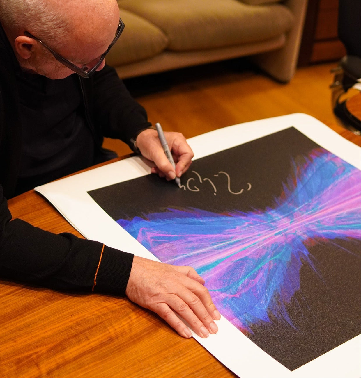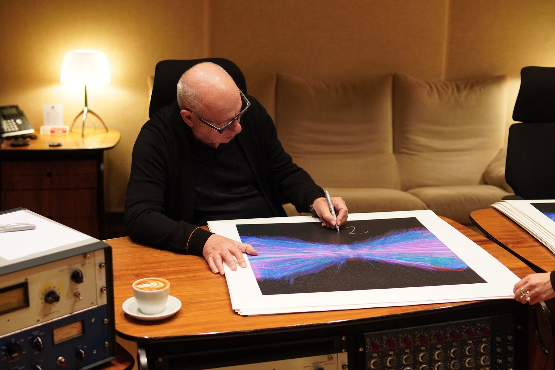 Limited edition Soundwaves Art created from the audio recording of "Walk of Life." This artwork was signed at his studio in London on October 29th, 2025. All profits from this collection will go to support the incredible work of War Child UK.