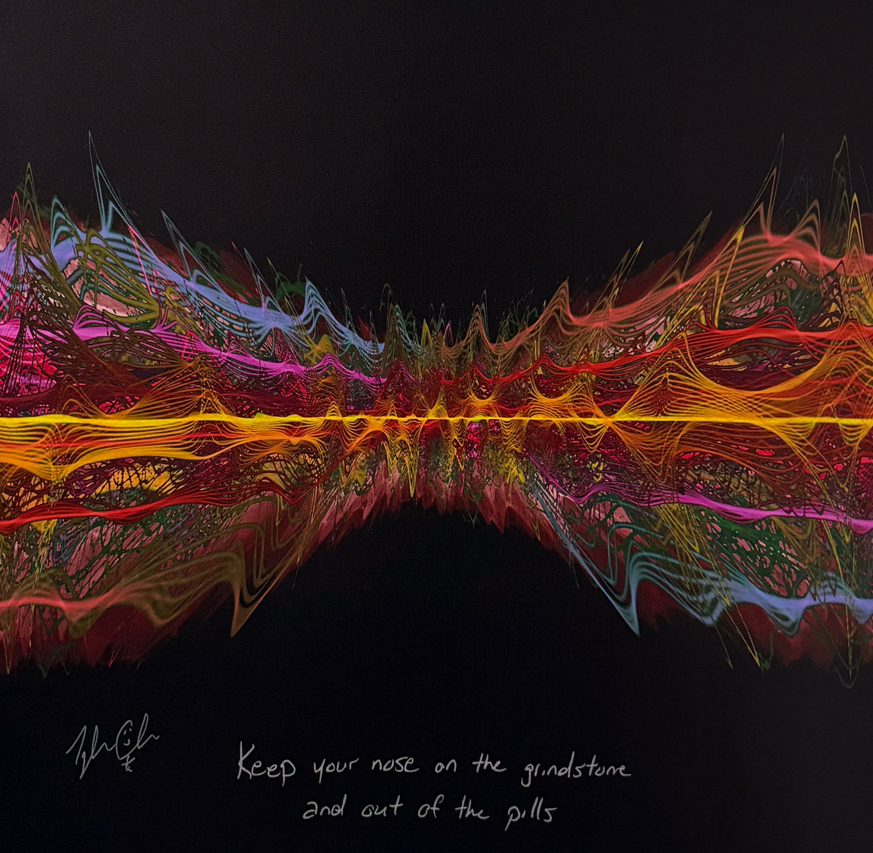 Original Soundwaves Artwork created from the audio of Tyler Childers’ song “Nose on the Grindstone.” Tyler Childers signed these prints before his show at The O2 in London on November 15, 2025.