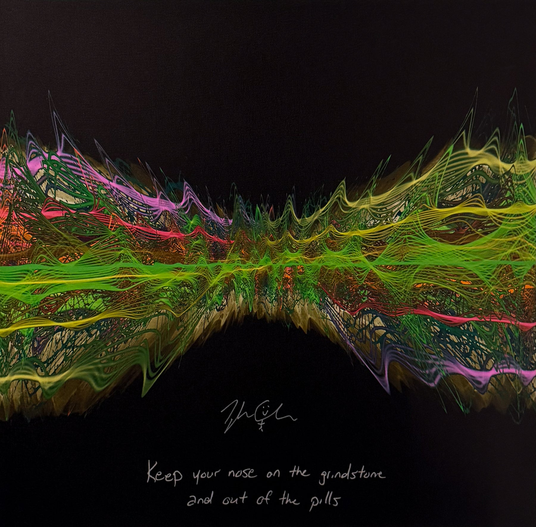 Each Artwork features a handwritten lyric from Tyler thats been digitally printed onto each artwork: "Keep your nose on the grindstone and out of the pills"
