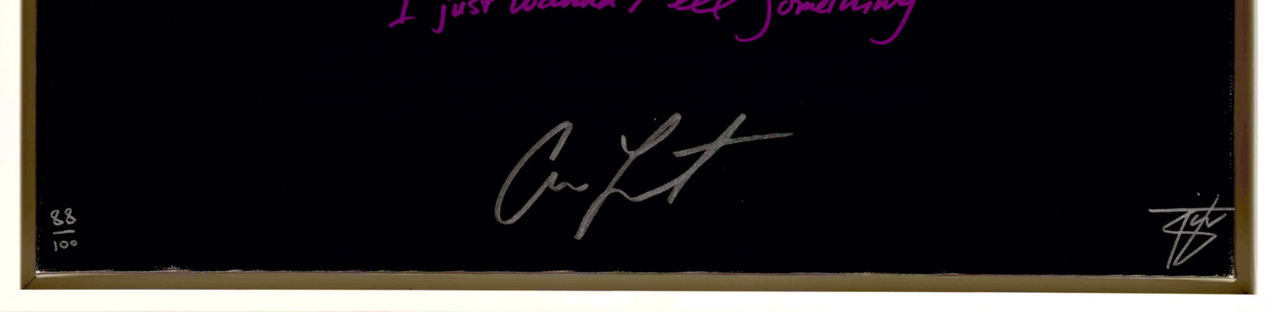 The print features the lyric "I just wanna feel something" written by Adam and printed onto the artwork.