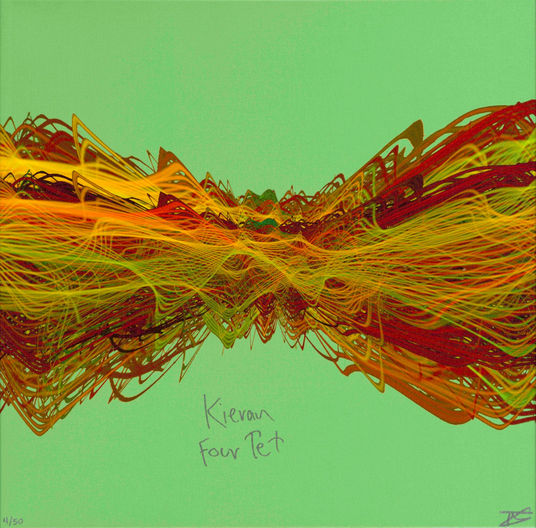 Limited edition Soundwaves Art created from the audio recording of Four Tet's "Two Thousand and Seventeen." This print has been hand signed by Kieran before his show at Avant Gardener in New York in May 2023.