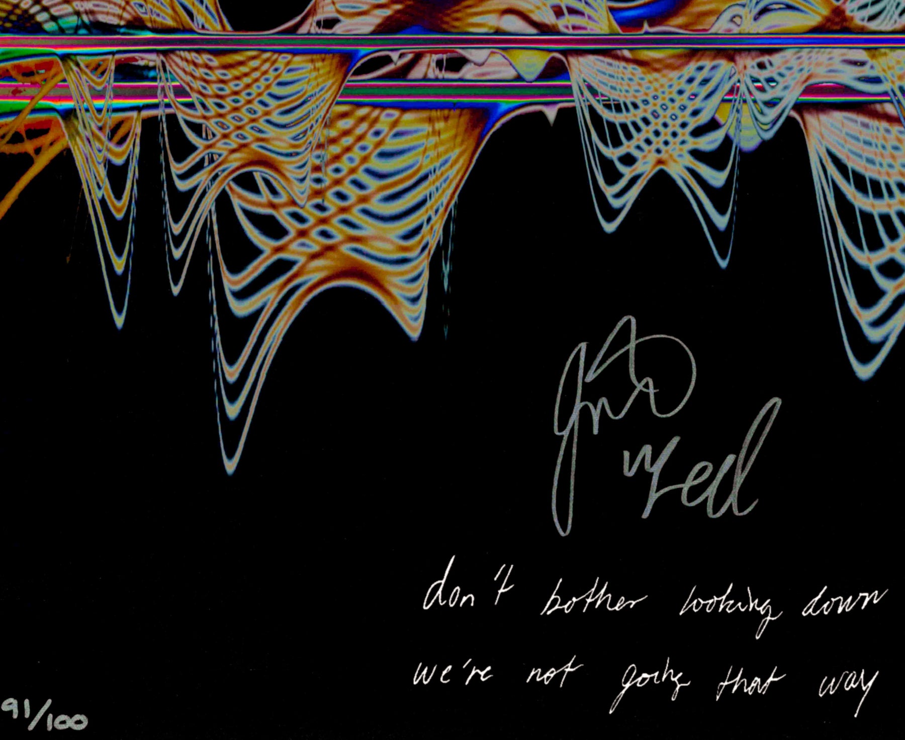 Each signed print measures 24″ x 24″ and is hand signed by the musician. They are part of a larger run of prints, typically with 50-100 copies signed in total. Our unsigned prints, which come in a standard and a mini size, feature the same design as the signed print, but do not have the musician's autograph. They are still limited edition and are signed by Soundwaves Art creator, Tim Wakefield.