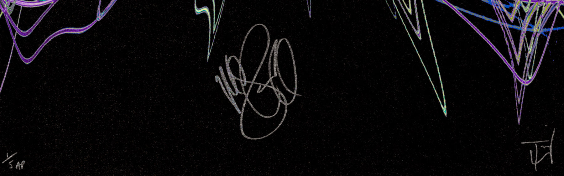Each signed print measures 24″ x 24″ and is hand signed by the musician. They are part of a larger run of prints, typically with 50-100 copies signed in total. Our unsigned prints, which come in a standard and a mini size, feature the same design as the signed print, but do not have the musician's autograph. They are still limited edition and are signed by Soundwaves Art creator, Tim Wakefield.