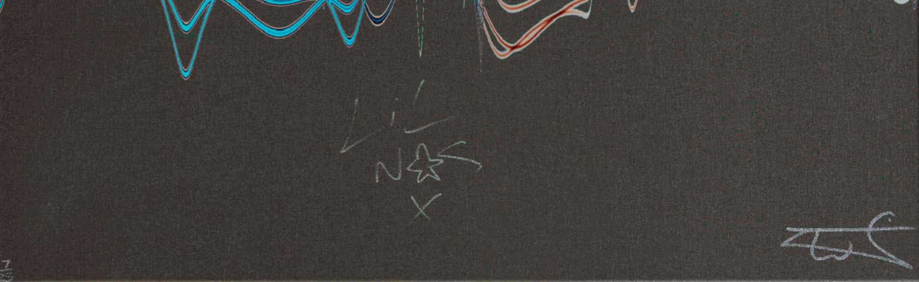 Limited edition Soundwaves Artwork created from the sound waves of Lil Nas X’s chart-topping single “Montero (Call Me By Your Name)”.  This print is hand-signed Lil Nas X and Soundwaves Art creator, Tim Wakefield.