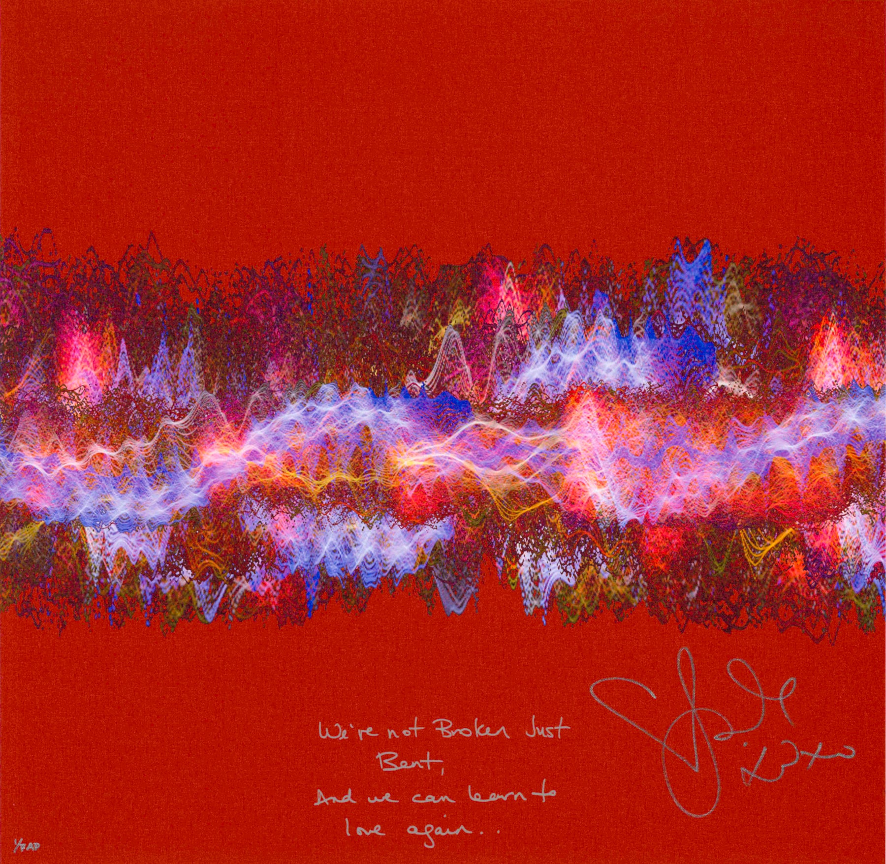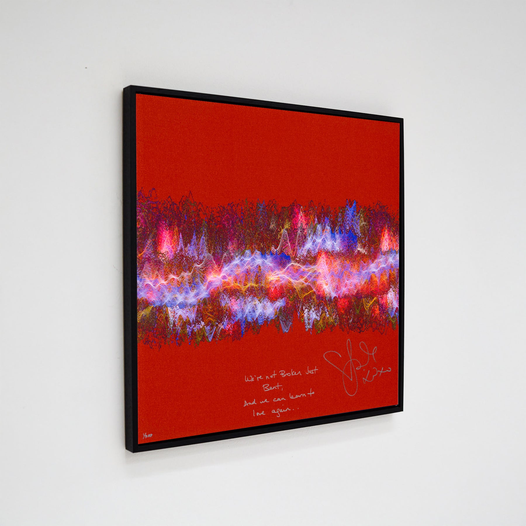 Limited edition Soundwaves artwork made from the sound waves of P!nk's hugely popular 2013 ballad, "Just Give Me A Reason." P!nk hand-signed this print in Austin, TX before her Weekend 2 performance at ACL Festival 2022.