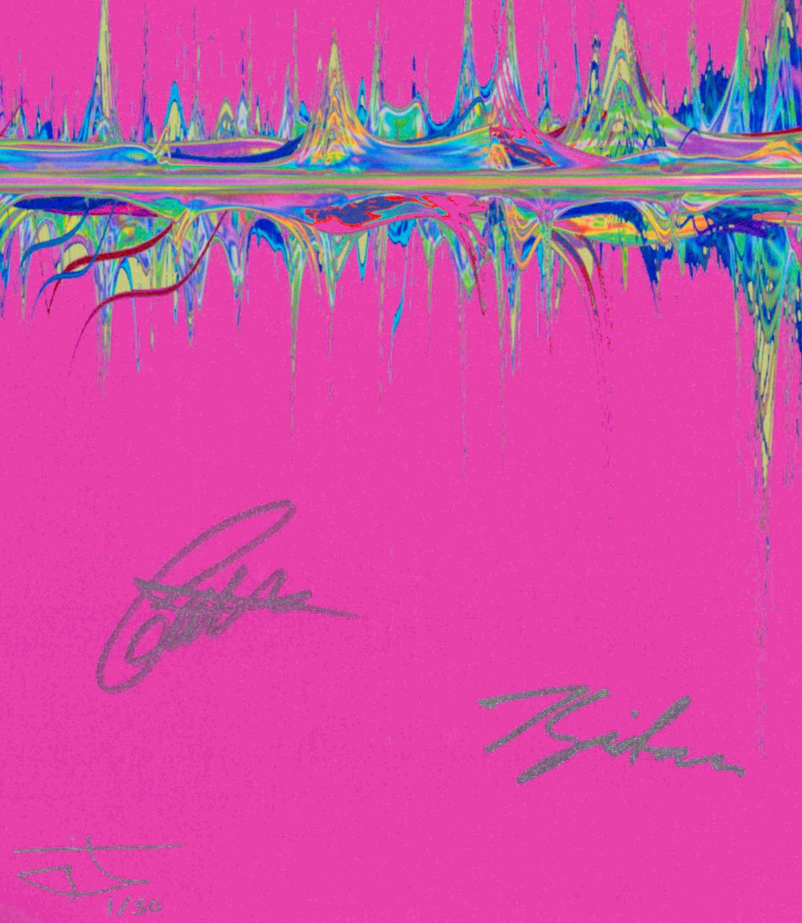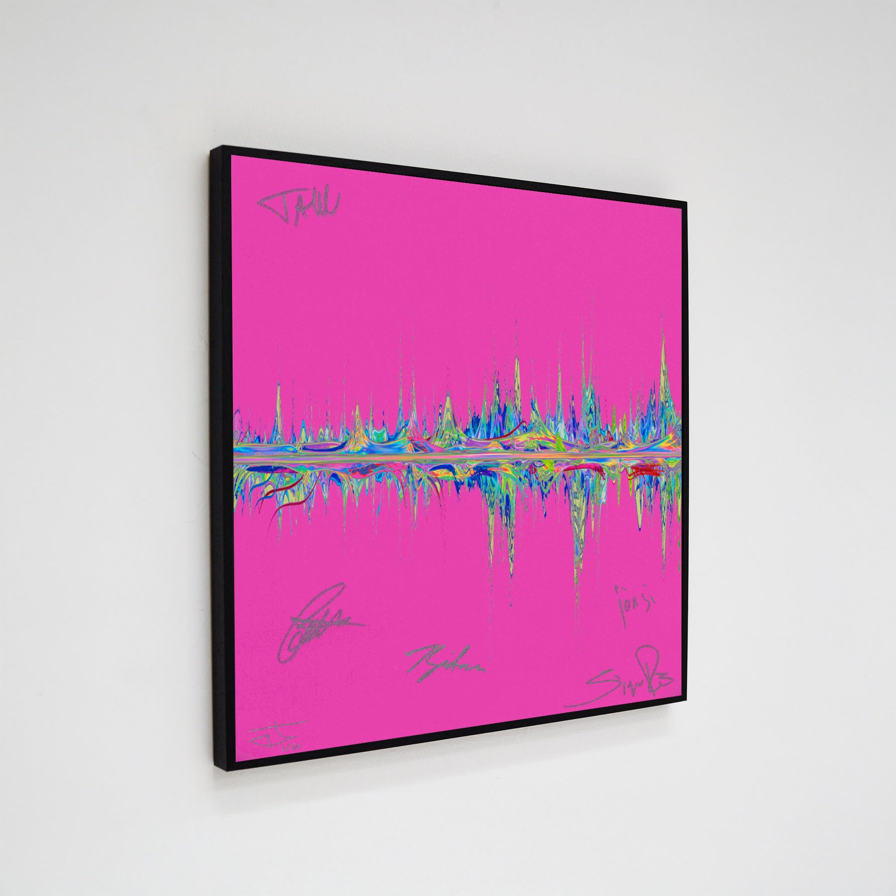 Each signed print measures 24″ x 24″ and is hand signed by the musician. They are part of a larger run of prints, typically with 50-100 copies signed in total. Our unsigned prints, which come in a standard and a mini size, feature the same design as the signed print, but do not have the musician's autograph. They are still limited edition and are signed by Soundwaves Art creator, Tim Wakefield.