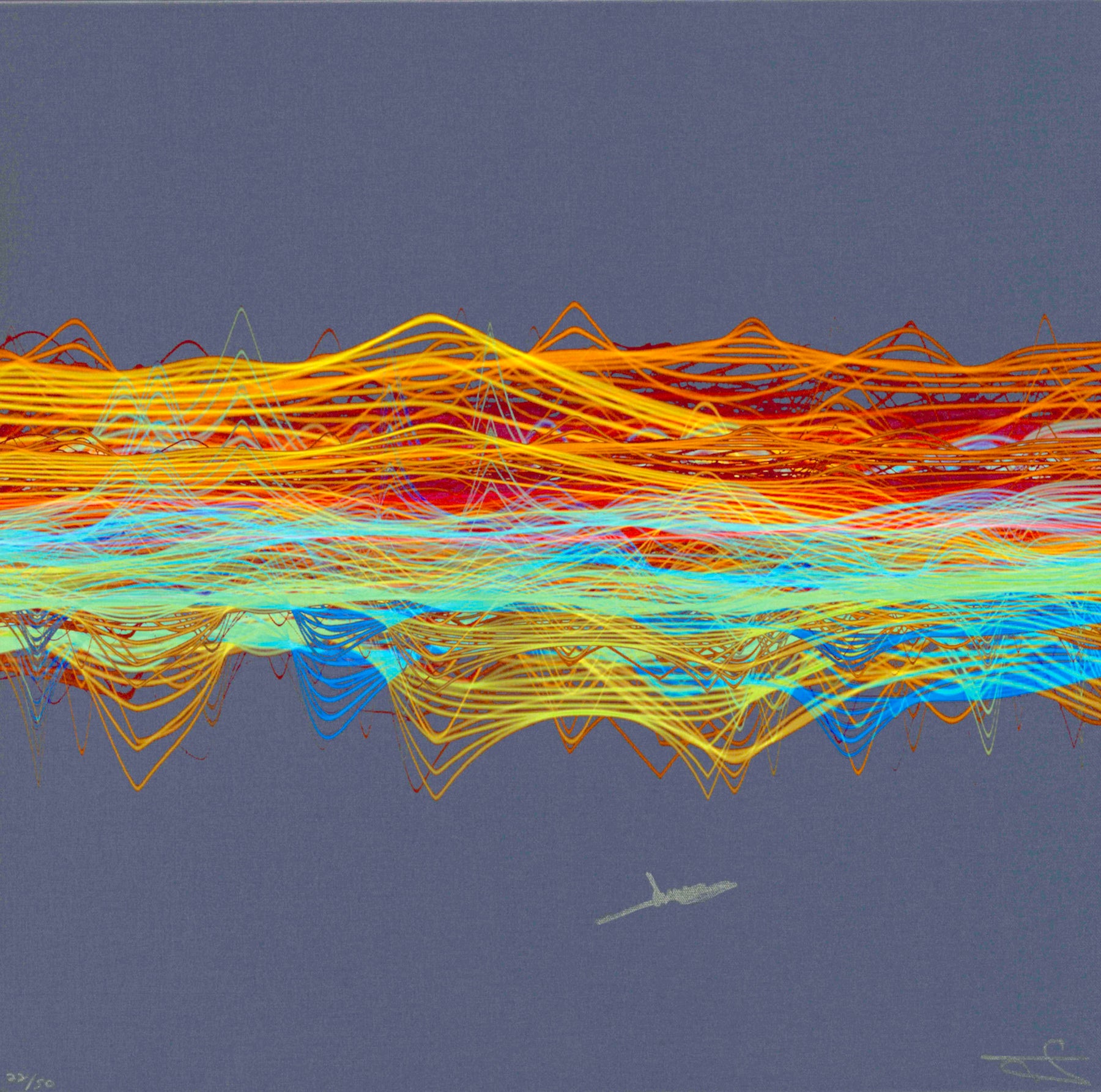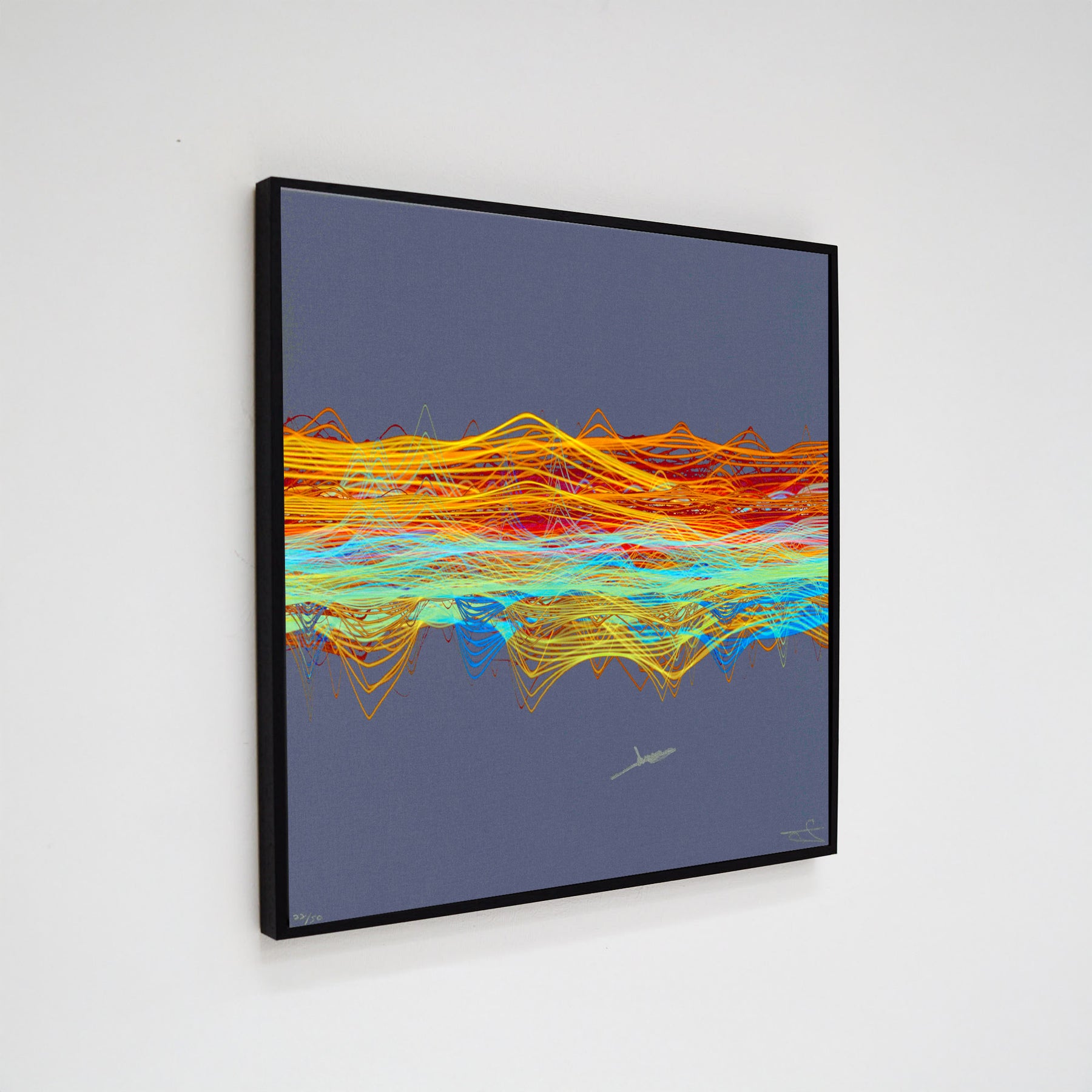 Our Originals measure 38″ x 38″ and often feature a lyric or the title of the song written by the artist in addition to their signature. These are much more limited edition – there is only one Original created per design. Originals sometimes come in alternate color palettes or wave designs to the prints.