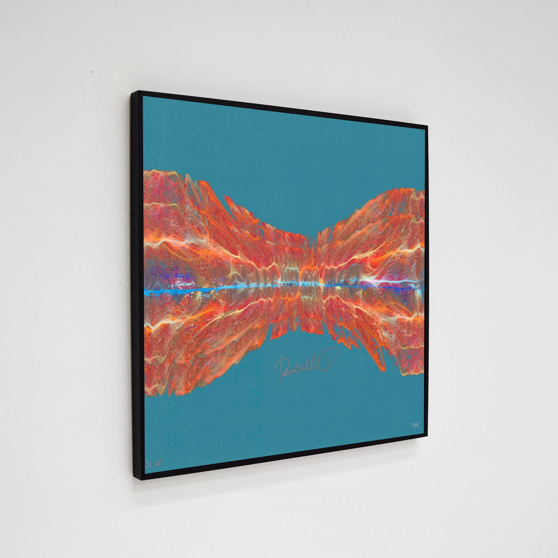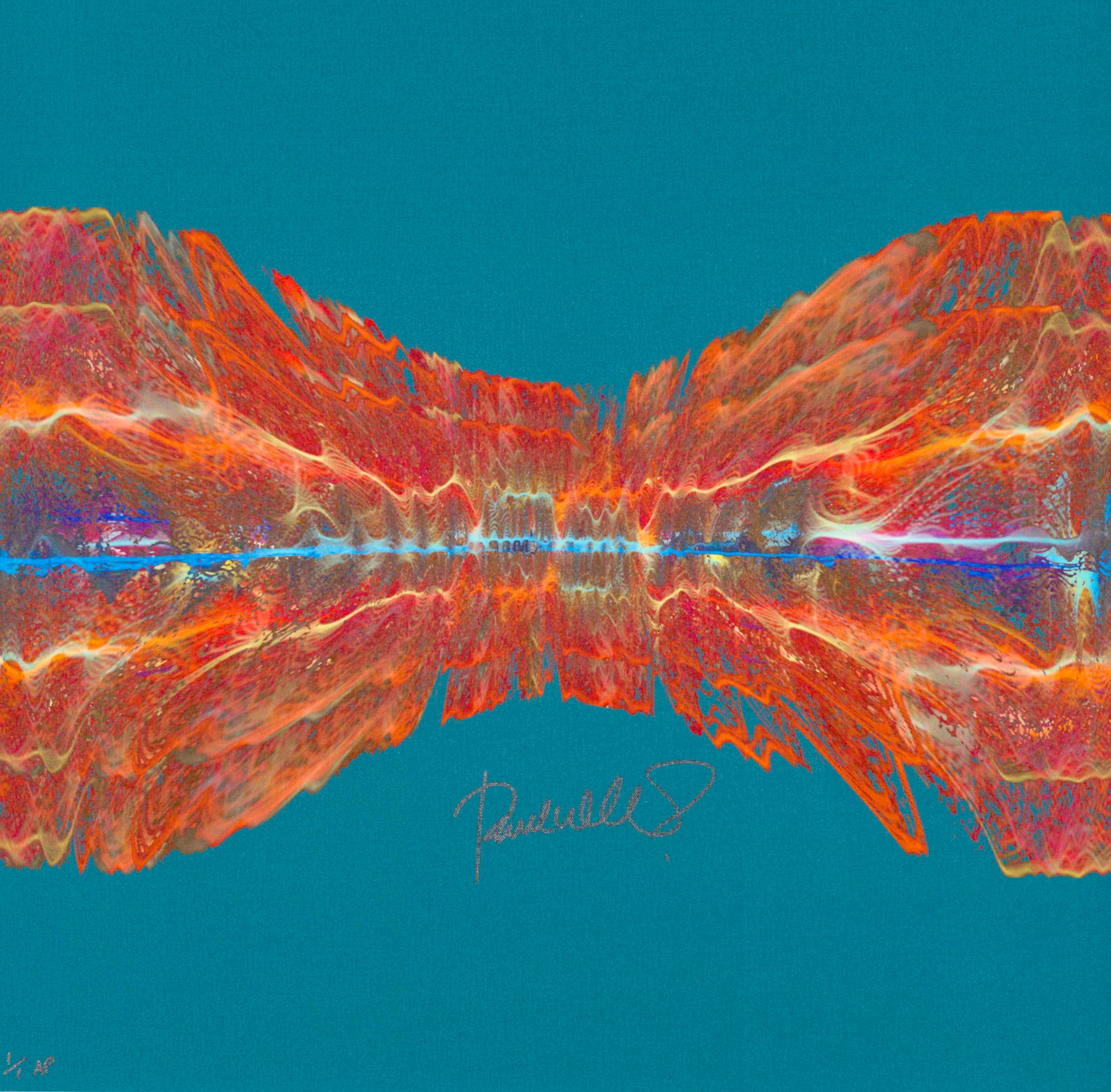 Our Originals measure 38″ x 38″ and often feature a lyric or the title of the song written by the artist in addition to their signature. These are much more limited edition – there is only one Original created per design. Originals sometimes come in alternate color palettes or wave designs to the prints.