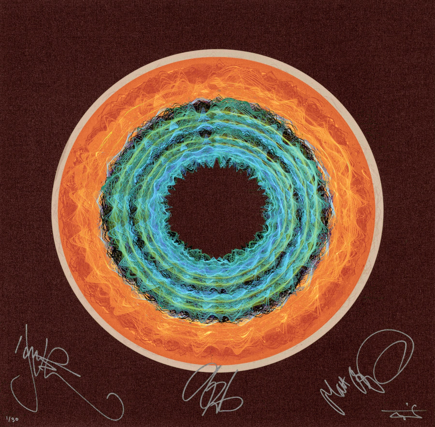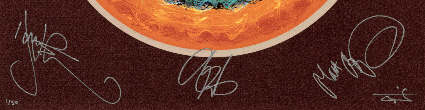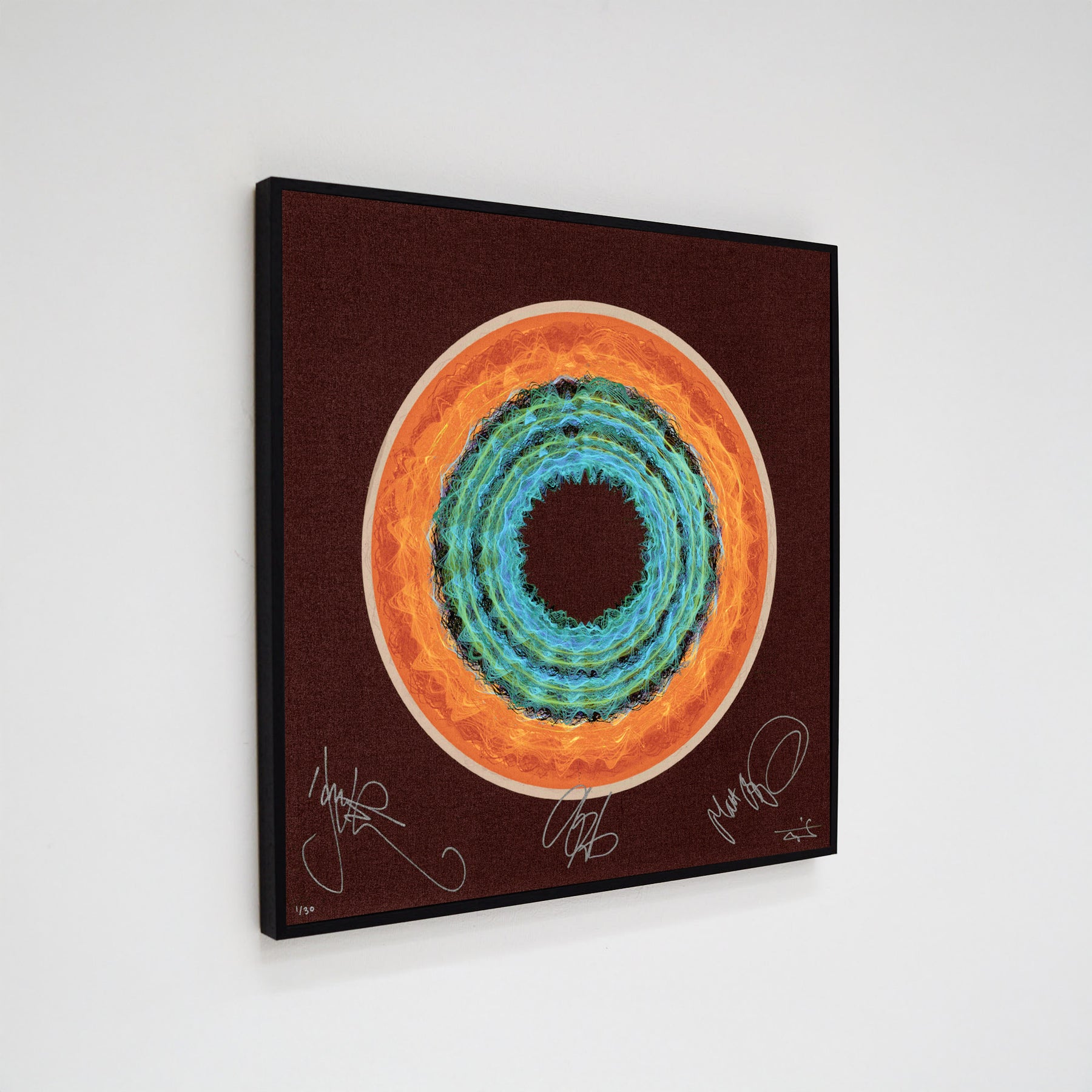 Each signed print measures 24″ x 24″ and is hand signed by the musician. They are part of a larger run of prints, typically with 50-100 copies signed in total. Our unsigned prints, which come in a standard and a mini size, feature the same design as the signed print, but do not have the musician's autograph. They are still limited edition and are signed by Soundwaves Art creator, Tim Wakefield.