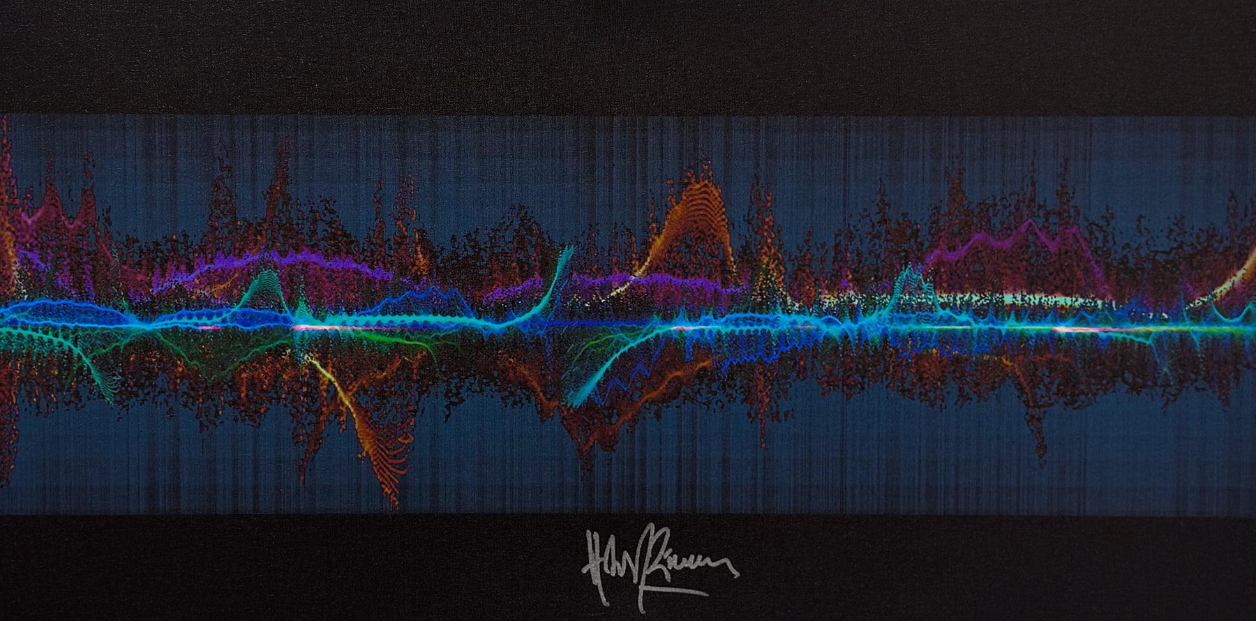 Each signed print measures 24″ x 24″ and is hand signed by the musician. They are part of a larger run of prints, typically with 50-100 copies signed in total. Our unsigned prints, which come in a standard and a mini size, feature the same design as the signed print, but do not have the musician's autograph. They are still limited edition and are signed by Soundwaves Art creator, Tim Wakefield.