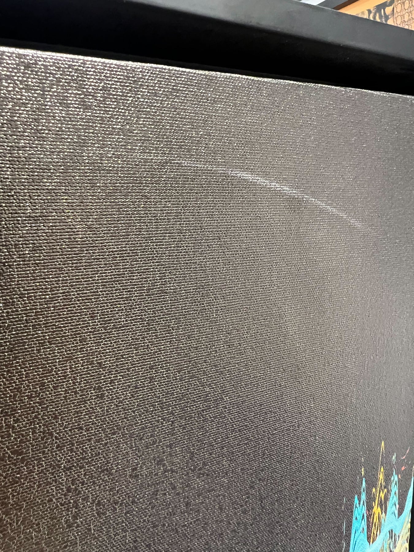 Our Originals measure 38″ x 38″ and often feature a lyric or the title of the song written by the artist in addition to their signature. These are much more limited edition – there is only one Original created per design. Originals sometimes come in alternate color palettes or wave designs to the prints.