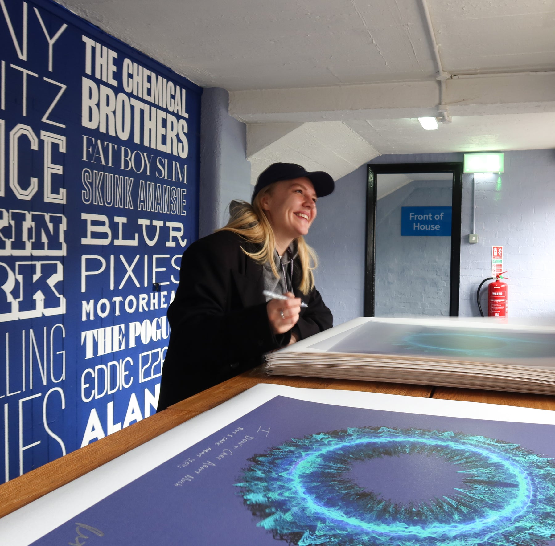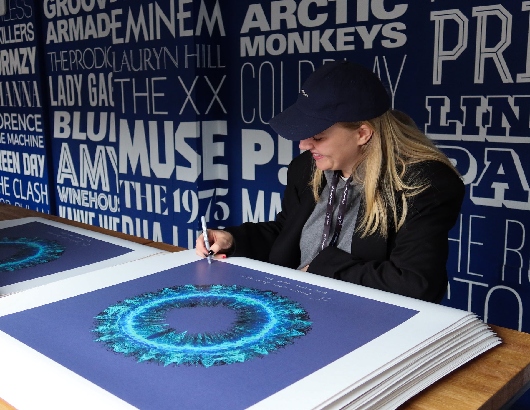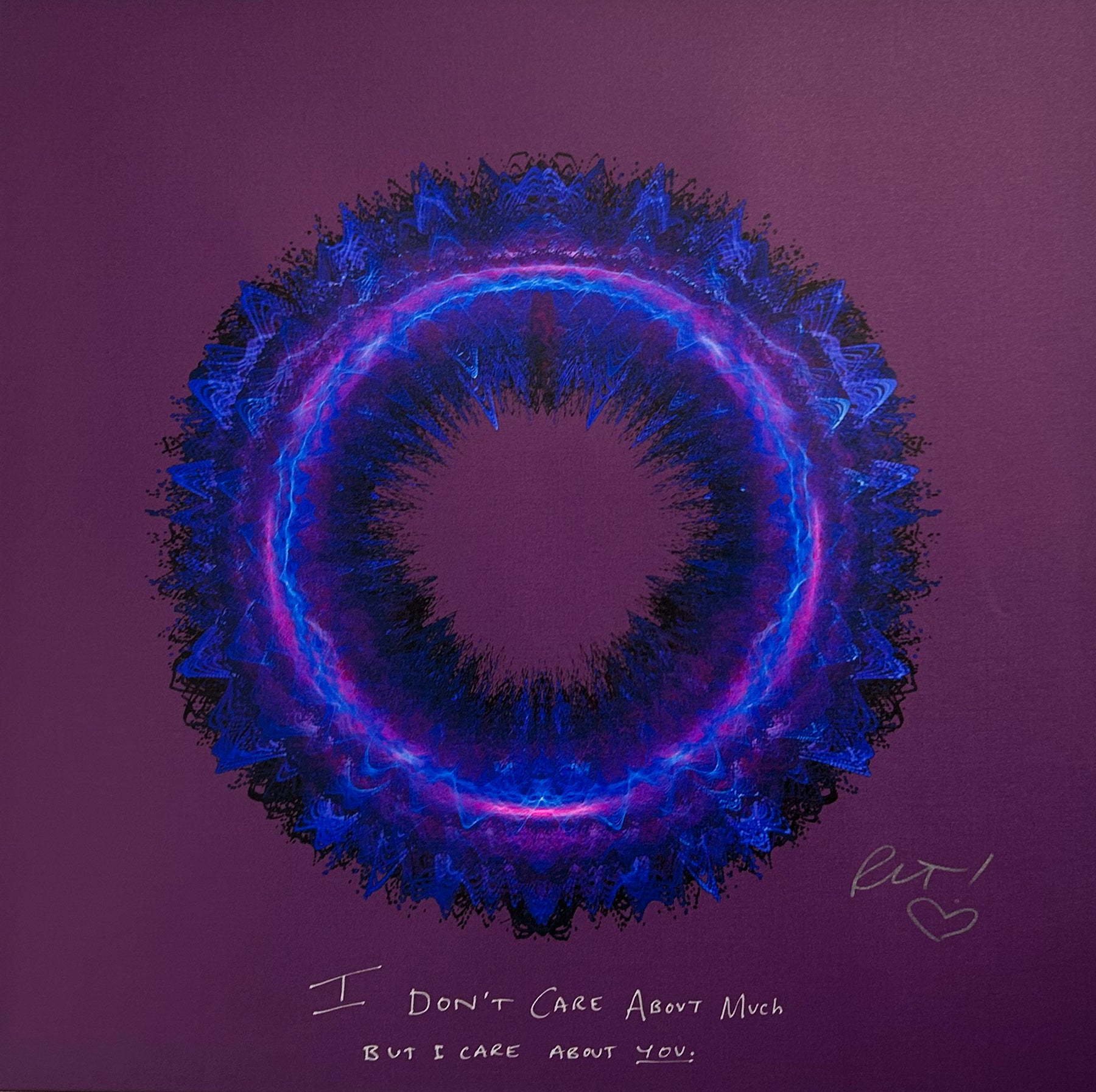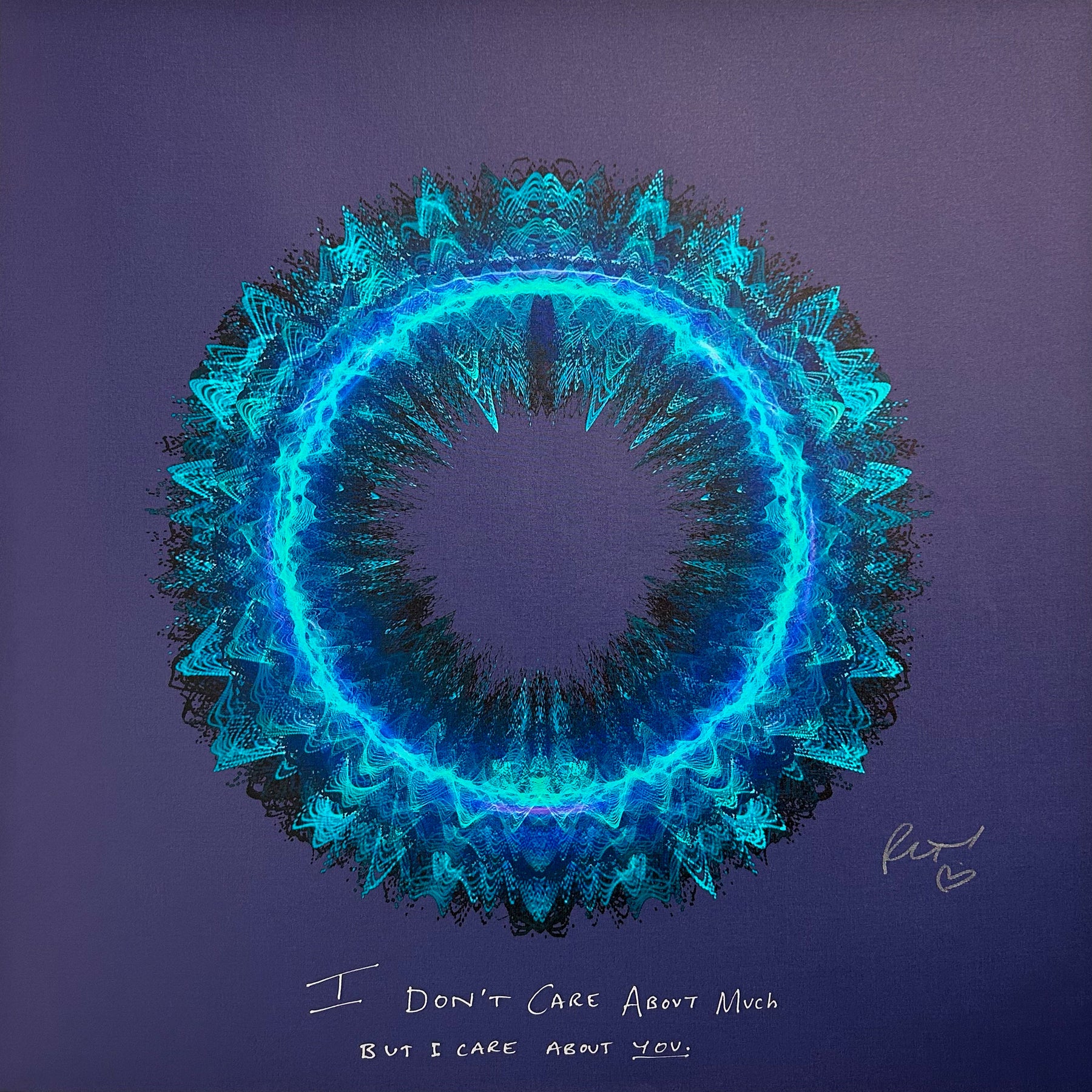 Our Originals measure 38″ x 38″ and often feature a lyric or the title of the song written by the artist in addition to their signature. These are much more limited edition – there is only one Original created per design. Originals sometimes come in alternate color palettes or wave designs to the prints.