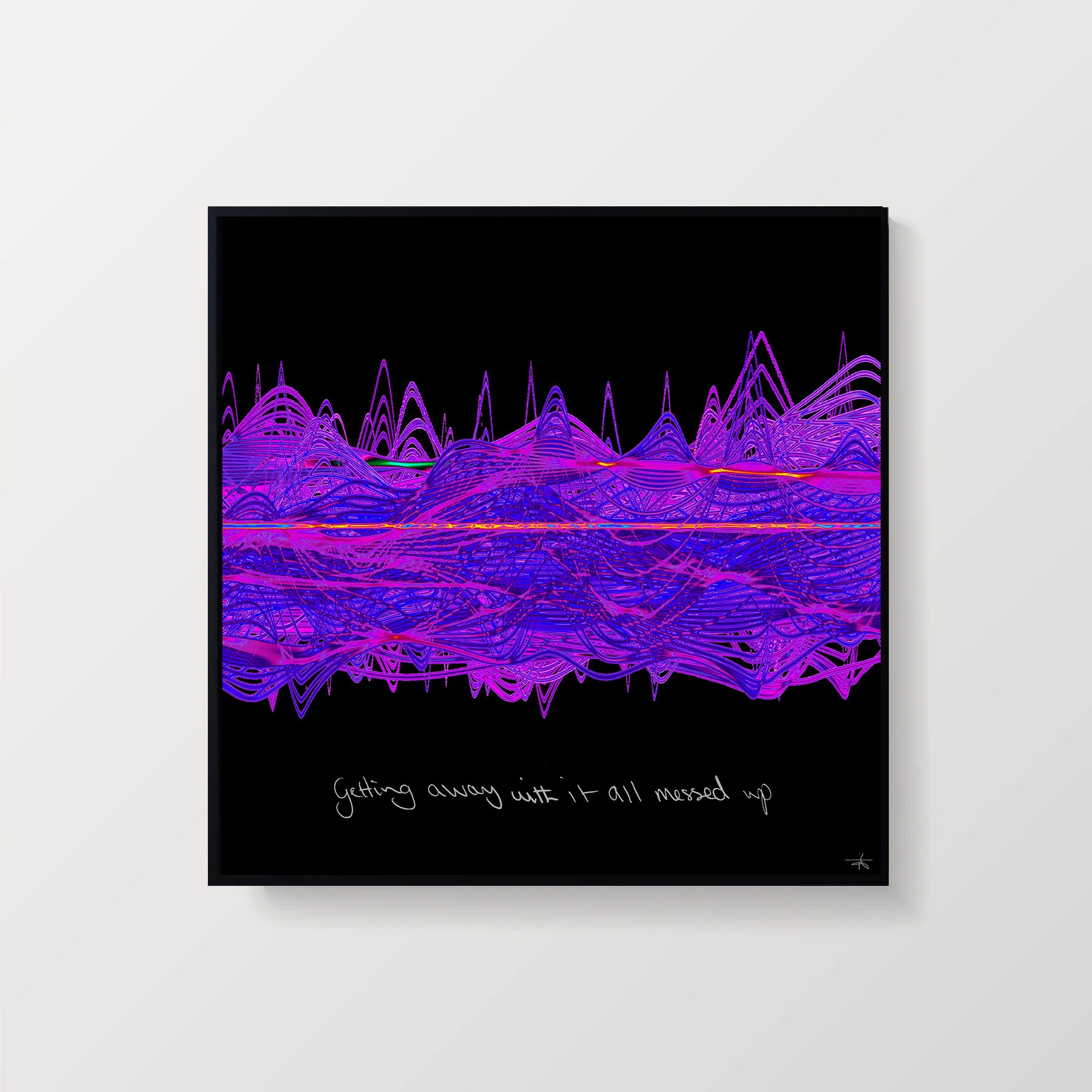 Soundwaves Artwork created from the soundwaves of James "Getting Away With it (All Messed Up)." Every print is hand signed by Soundwaves Art creator, Tim Wakefield. These prints are NOT signed by the band.