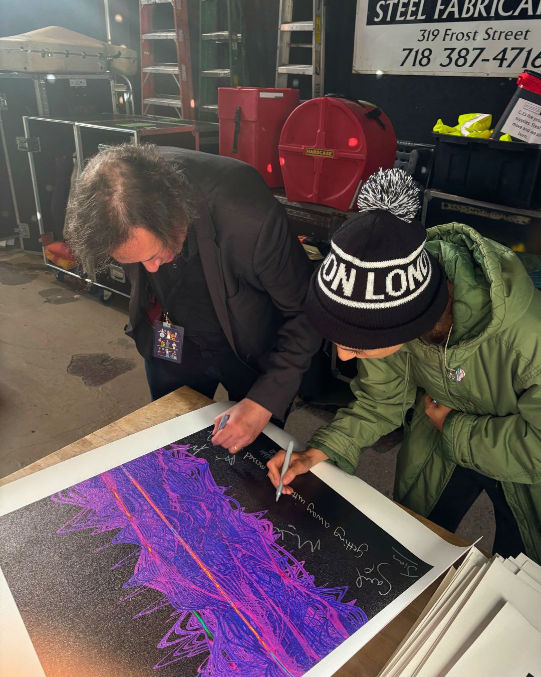 Each signed print measures 24″ x 24″ and is hand signed by the musician. They are part of a larger run of prints, typically with 50-100 copies signed in total. Our unsigned prints, which come in a standard and a mini size, feature the same design as the signed print, but do not have the musician's autograph. They are still limited edition and are signed by Soundwaves Art creator, Tim Wakefield.