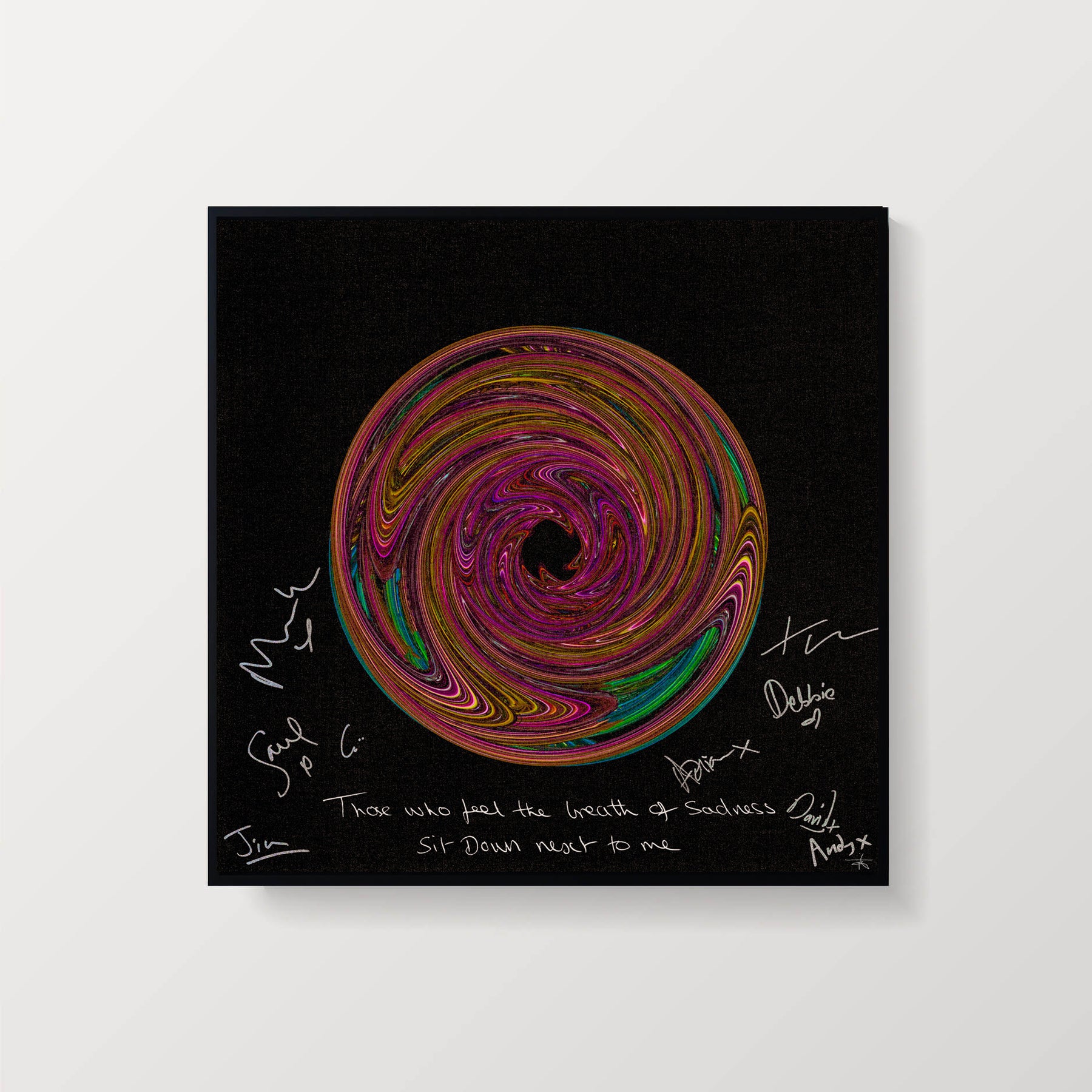 Our Originals measure 38″ x 38″ and often feature a lyric or the title of the song written by the artist in addition to their signature. These are much more limited edition – there is only one Original created per design. Originals sometimes come in alternate color palettes or wave designs to the prints.Ā