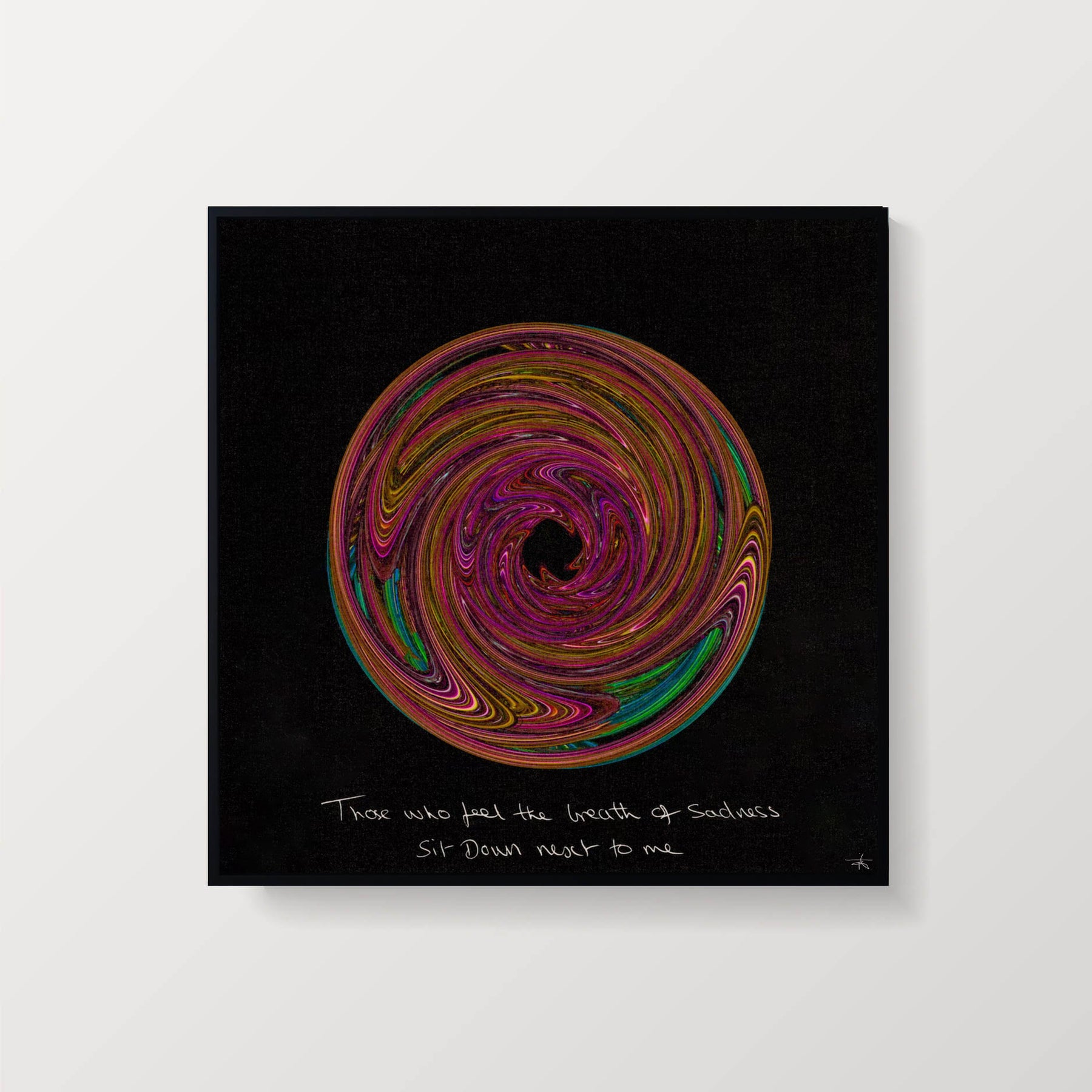 Our Originals measure 38″ x 38″ and often feature a lyric or the title of the song written by the artist in addition to their signature. These are much more limited edition – there is only one Original created per design. Originals sometimes come in alternate color palettes or wave designs to the prints.