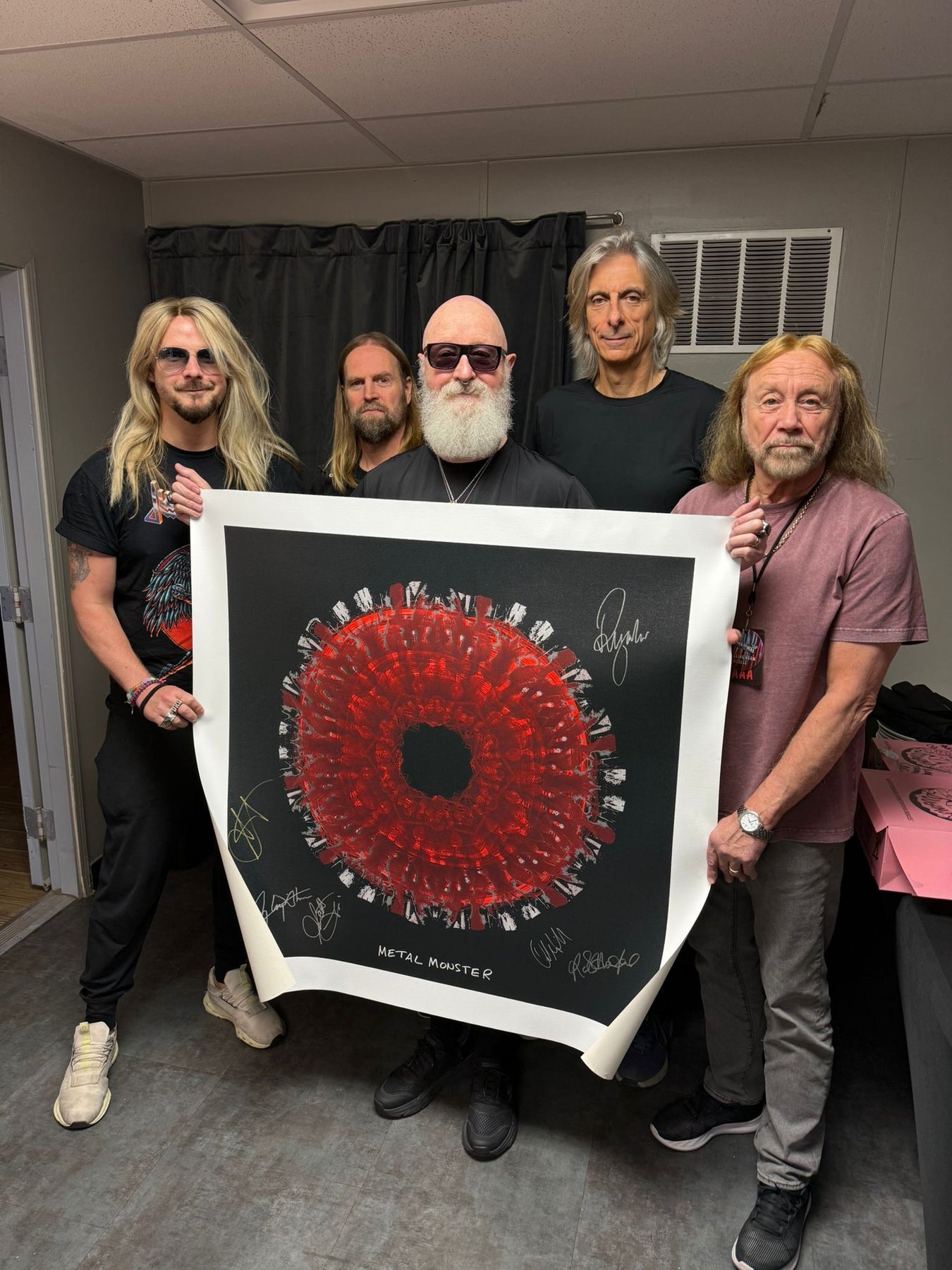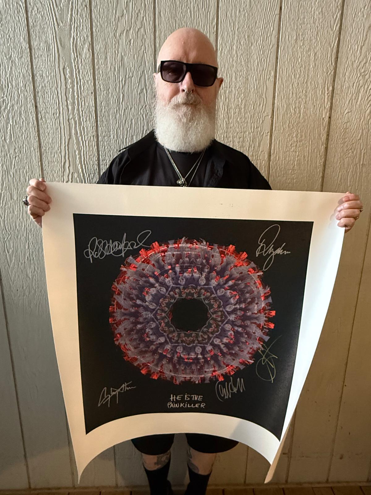 Artwork also features a handwritten lyric by Rob Halford that was digitally added to each print: "AIM FOR A NEW TOMORROW."