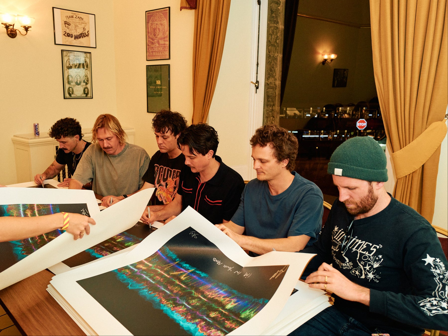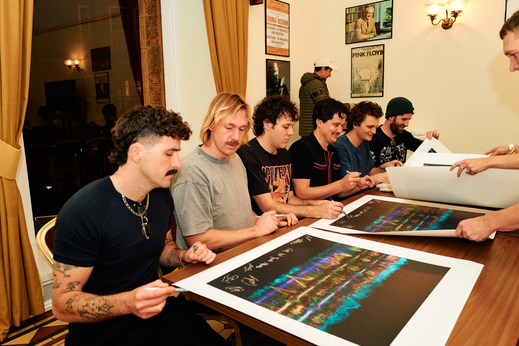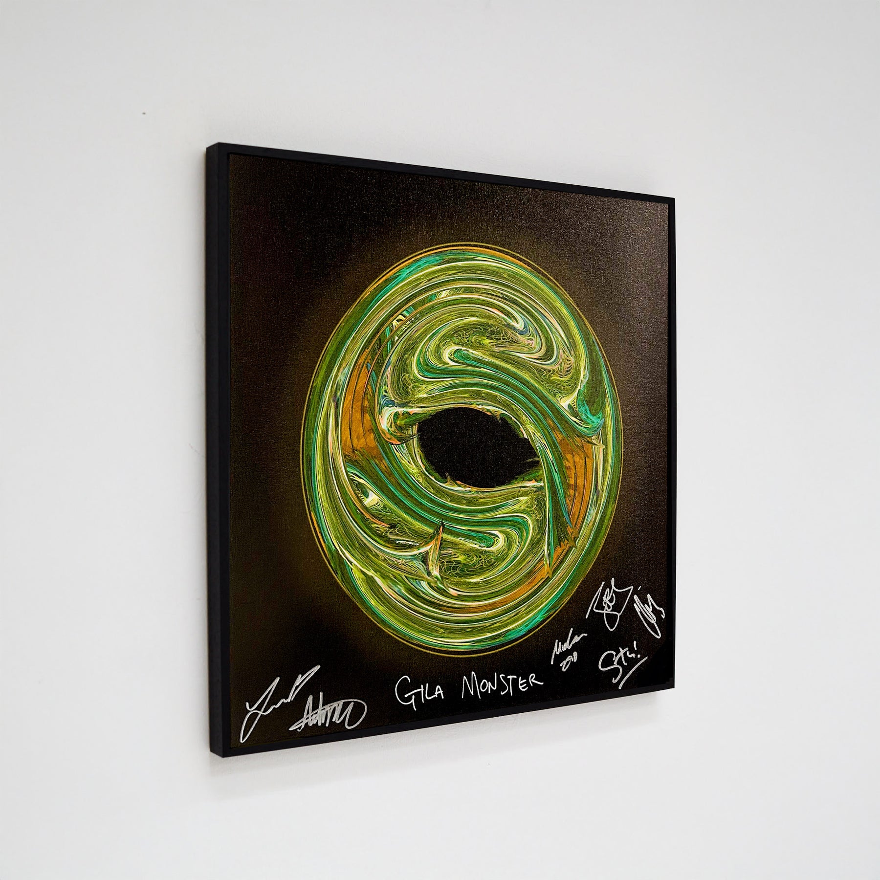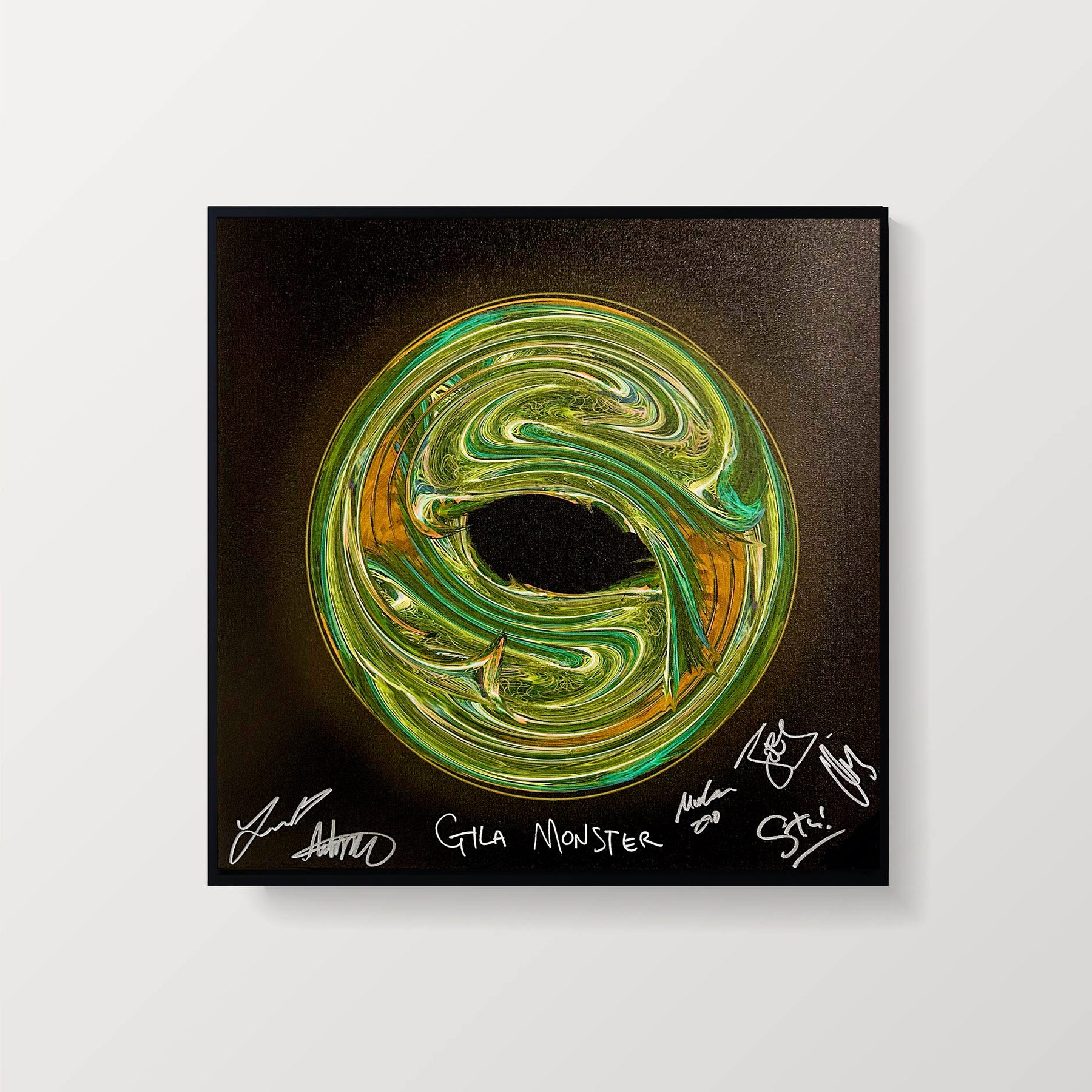 Each signed print measures 24″ x 24″ and is hand signed by the musician. They are part of a larger run of prints, typically with 50-100 copies signed in total. Our unsigned prints, which come in a standard and a mini size, feature the same design as the signed print, but do not have the musician's autograph. They are still limited edition and are signed by Soundwaves Art creator, Tim Wakefield.