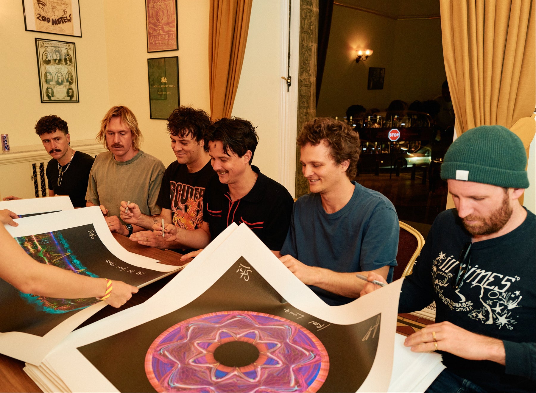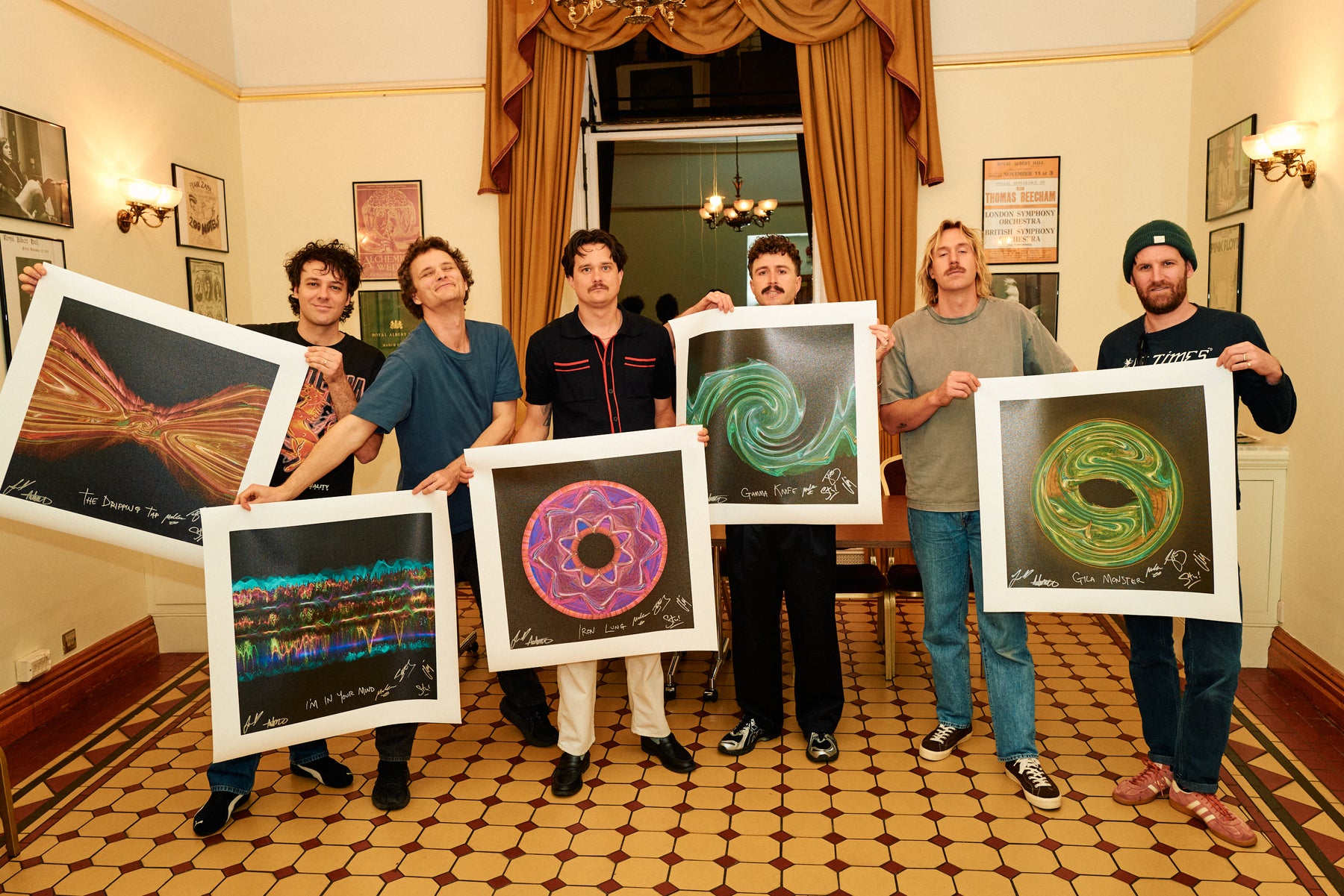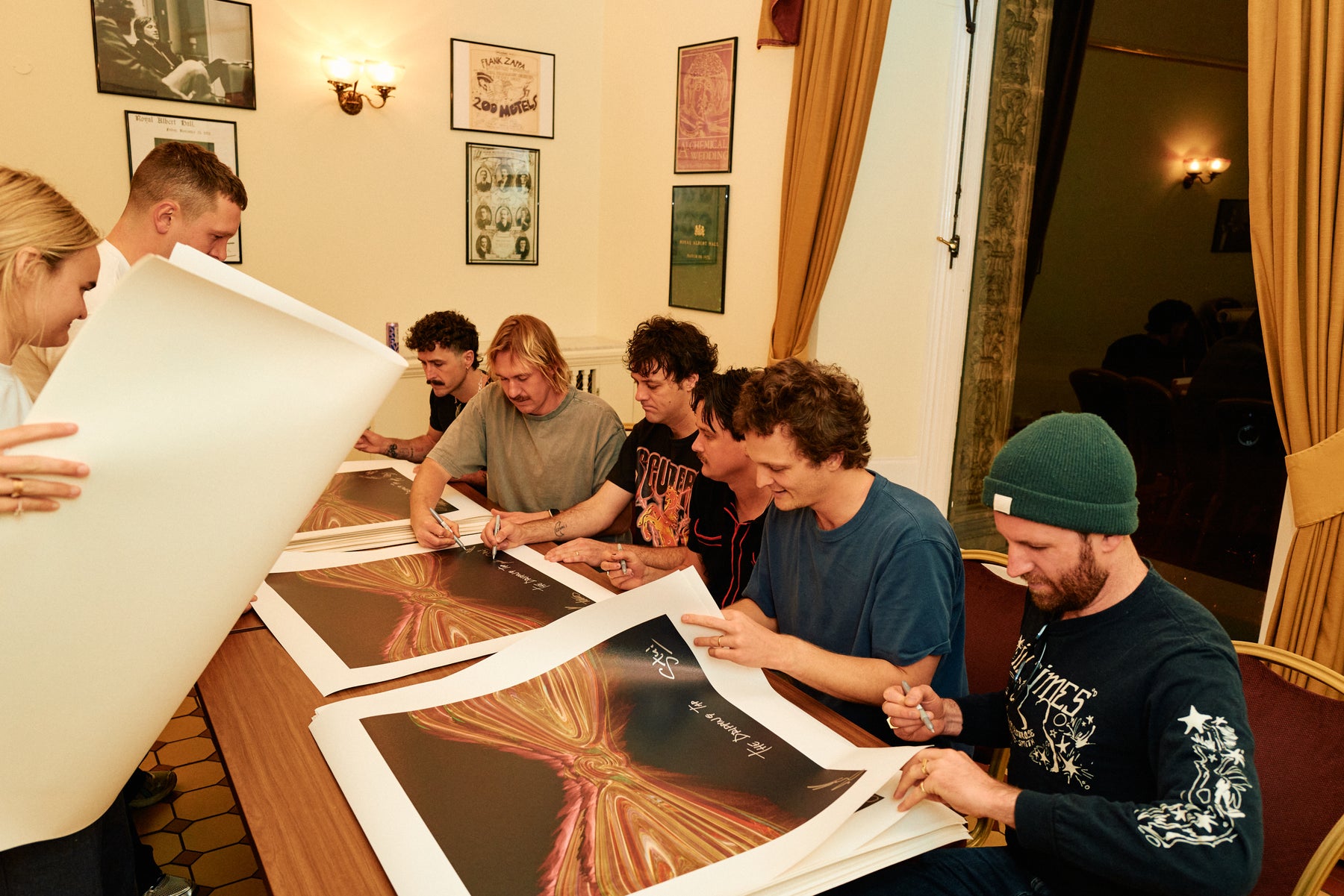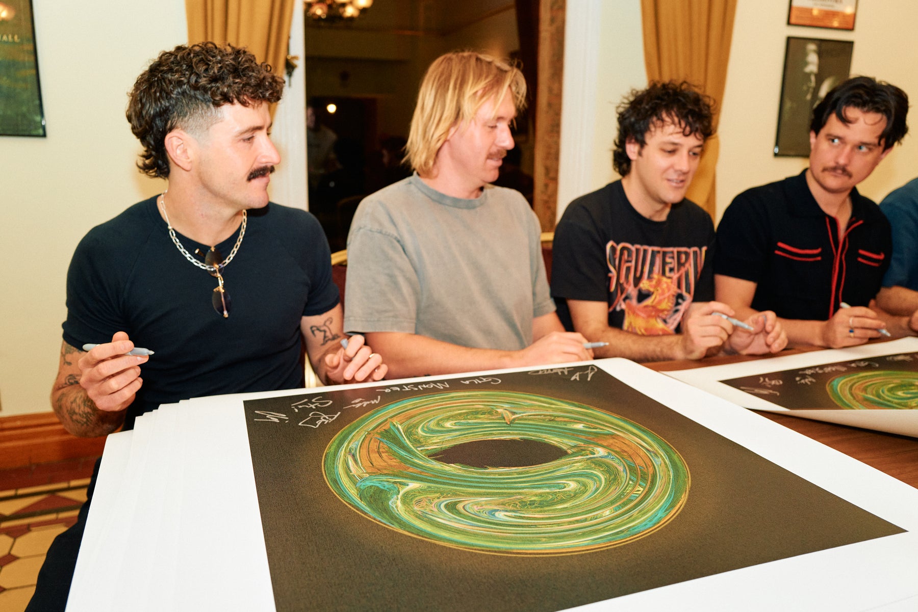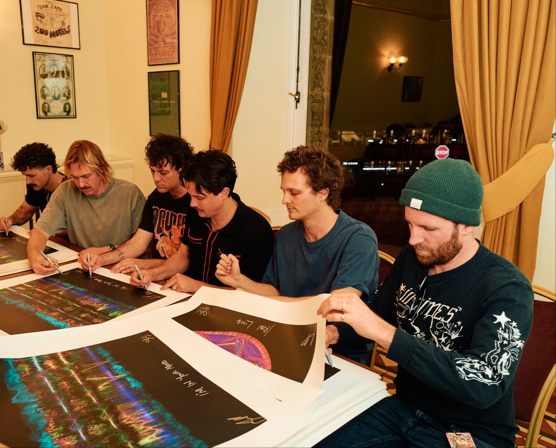 Each signed print measures 24″ x 24″ and is hand signed by the musician. They are part of a larger run of prints, typically with 50-100 copies signed in total. Our unsigned prints, which come in a standard and a mini size, feature the same design as the signed print, but do not have the musician's autograph. They are still limited edition and are signed by Soundwaves Art creator, Tim Wakefield.