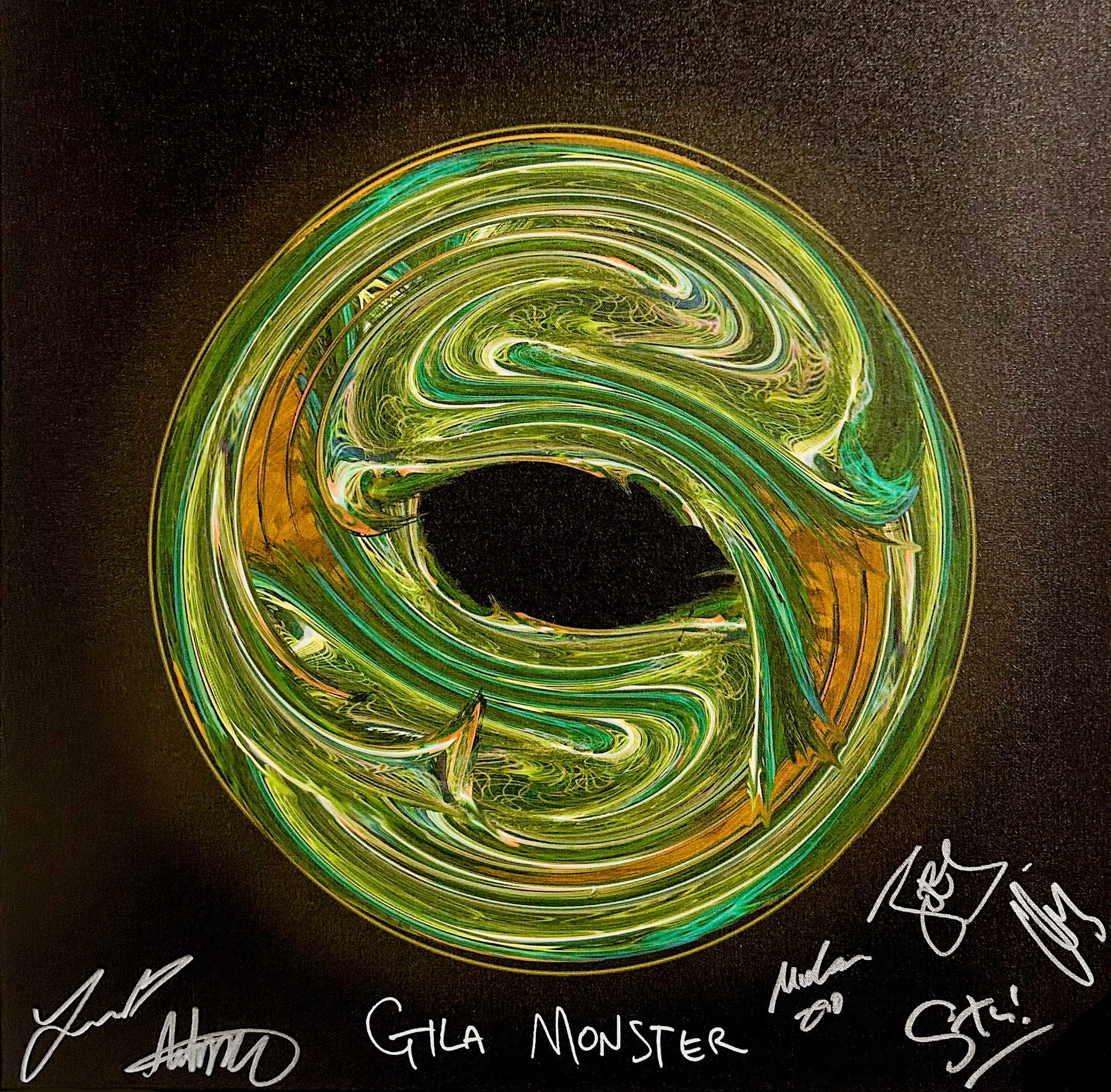 Our Originals measure 38″ x 38″ and often feature a lyric or the title of the song written by the artist in addition to their signature. These are much more limited edition – there is only one Original created per design. Originals sometimes come in alternate color palettes or wave designs to the prints.
