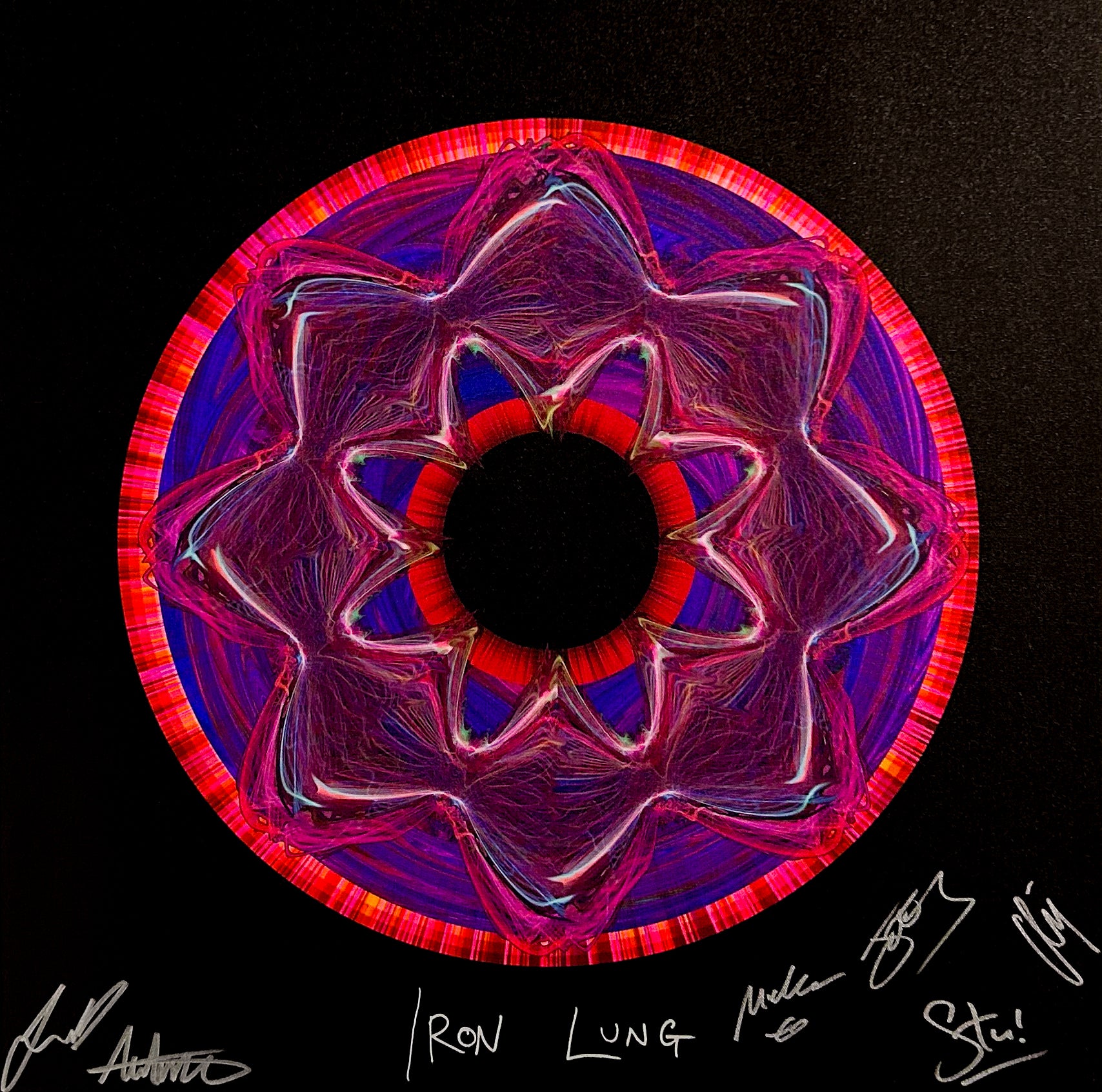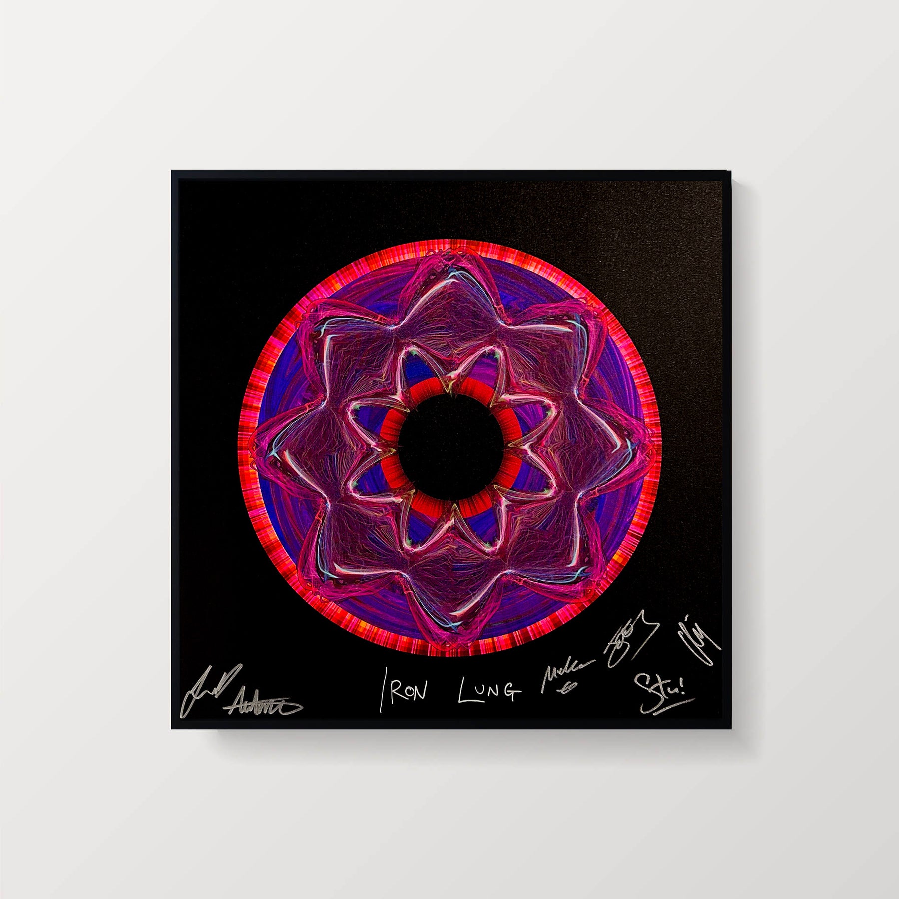 Each signed print measures 24″ x 24″ and is hand signed by the musician. They are part of a larger run of prints, typically with 50-100 copies signed in total. Our unsigned prints, which come in a standard and a mini size, feature the same design as the signed print, but do not have the musician's autograph. They are still limited edition and are signed by Soundwaves Art creator, Tim Wakefield.
